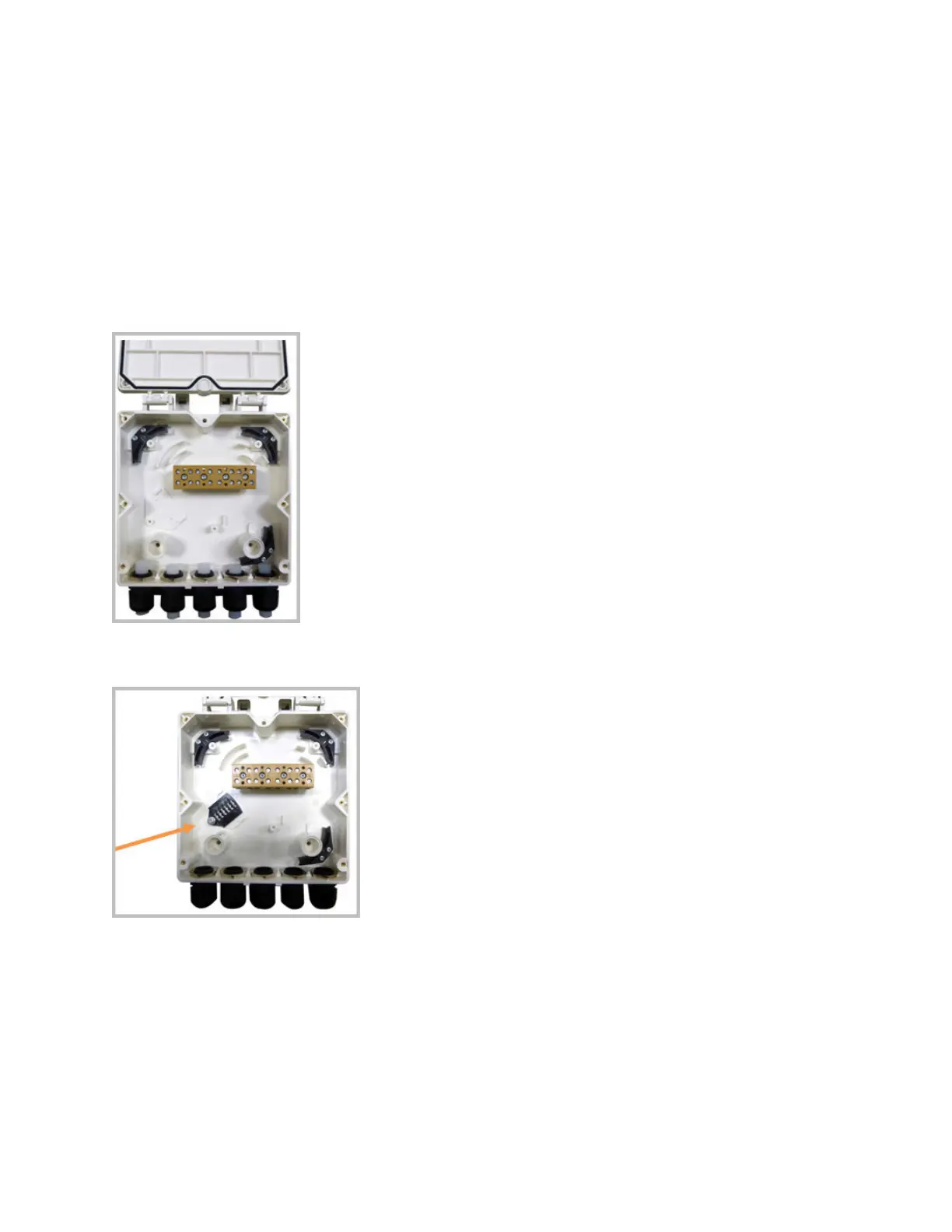 1. Open the Hybrid Fiber Splice Box and remove the installaon kit that is inside.