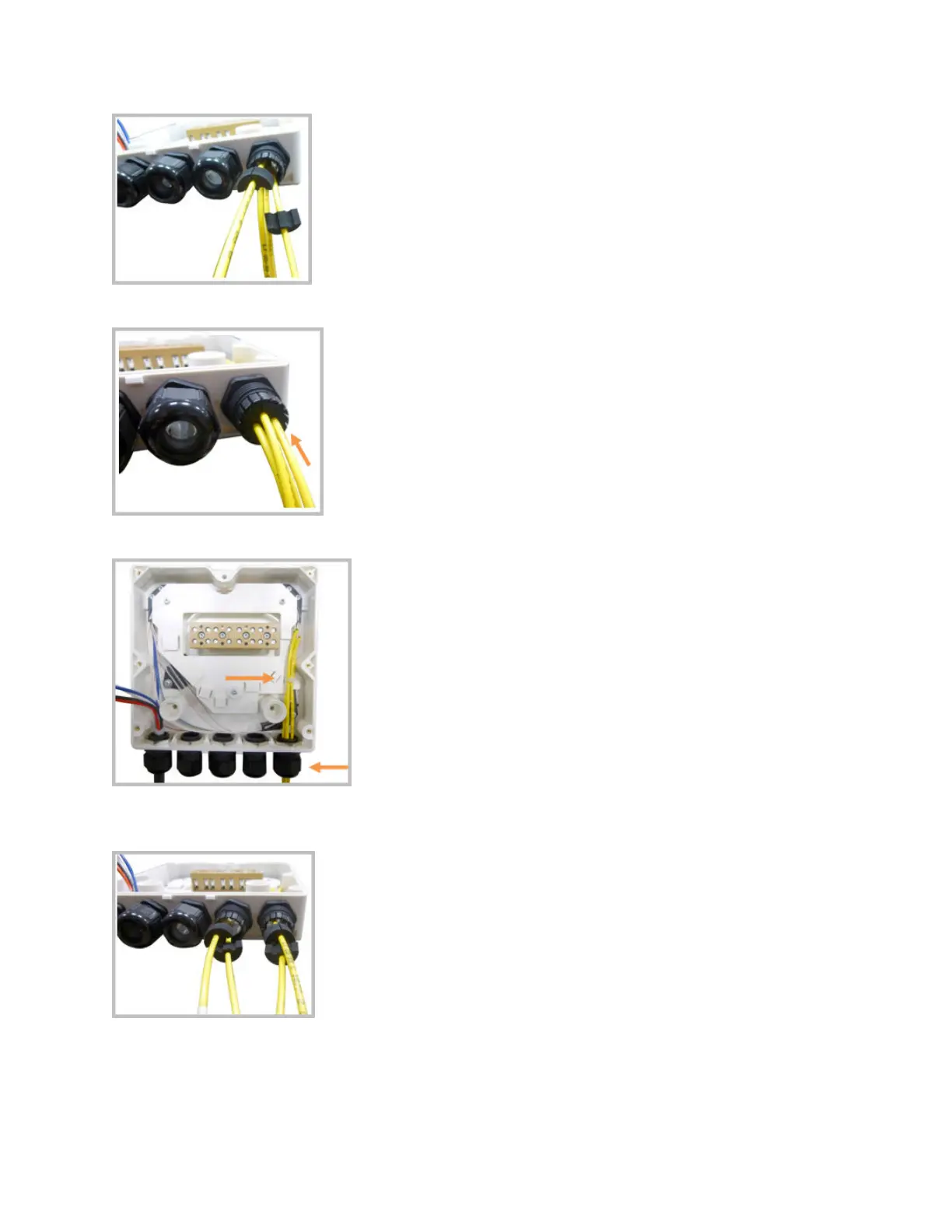 12. Fix the opcal cables inside the box using one cable e and ghten the sealing nut.