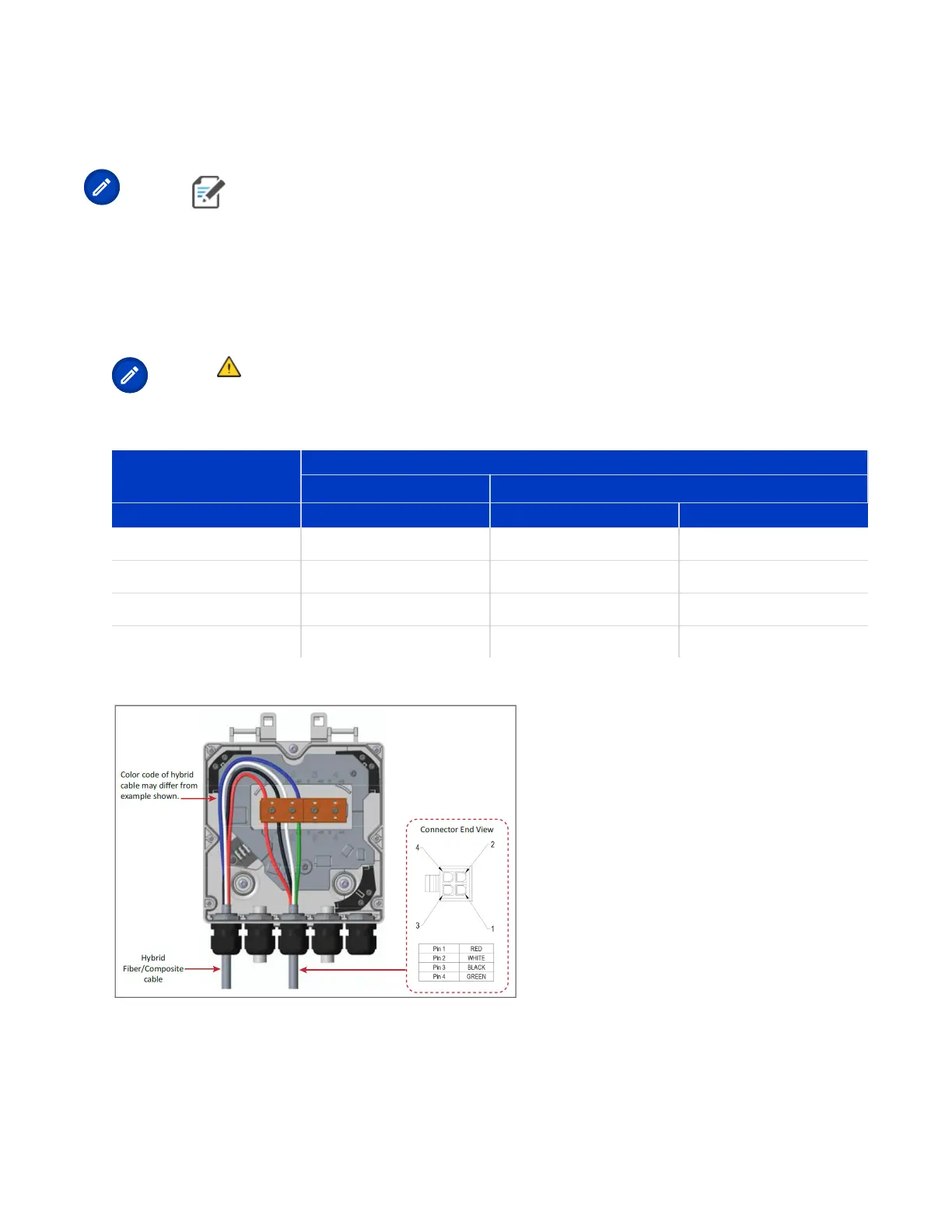 1. Refer to Table 7: 4-Wire Power Wiring with LPS (page 27) and Figure 4: Wiring a Hybrid Fiber Splice Box