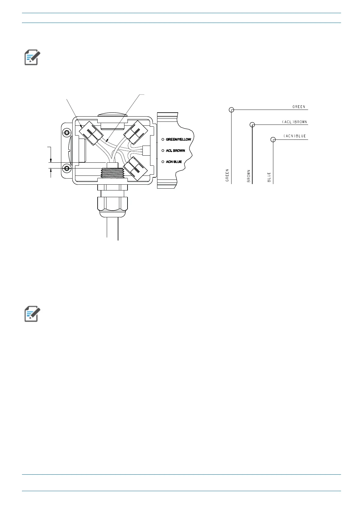 ) 3-conductor AC input cable through the cable gland in the junction box.