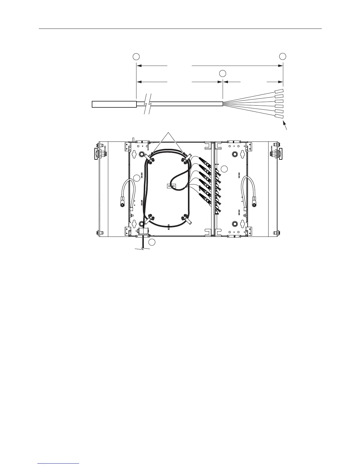 Figure 17. Field Termination Breakout and Routing, 12-Fiber Wall-Mount Box (Bottom Entry)