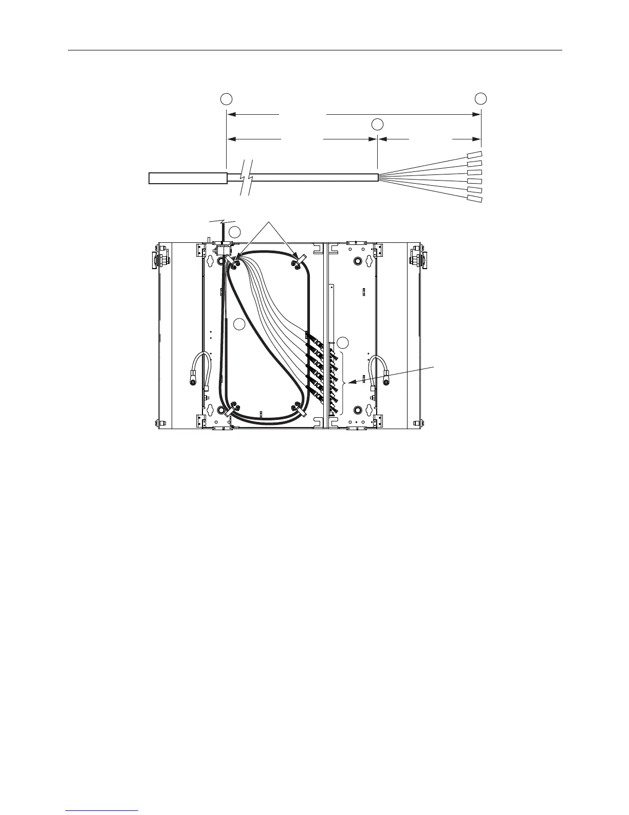 Figure 22. Field Termination Breakout and Routing, 24-Fiber Wall-Mount Box (Top Entry, Bottom 6paks)