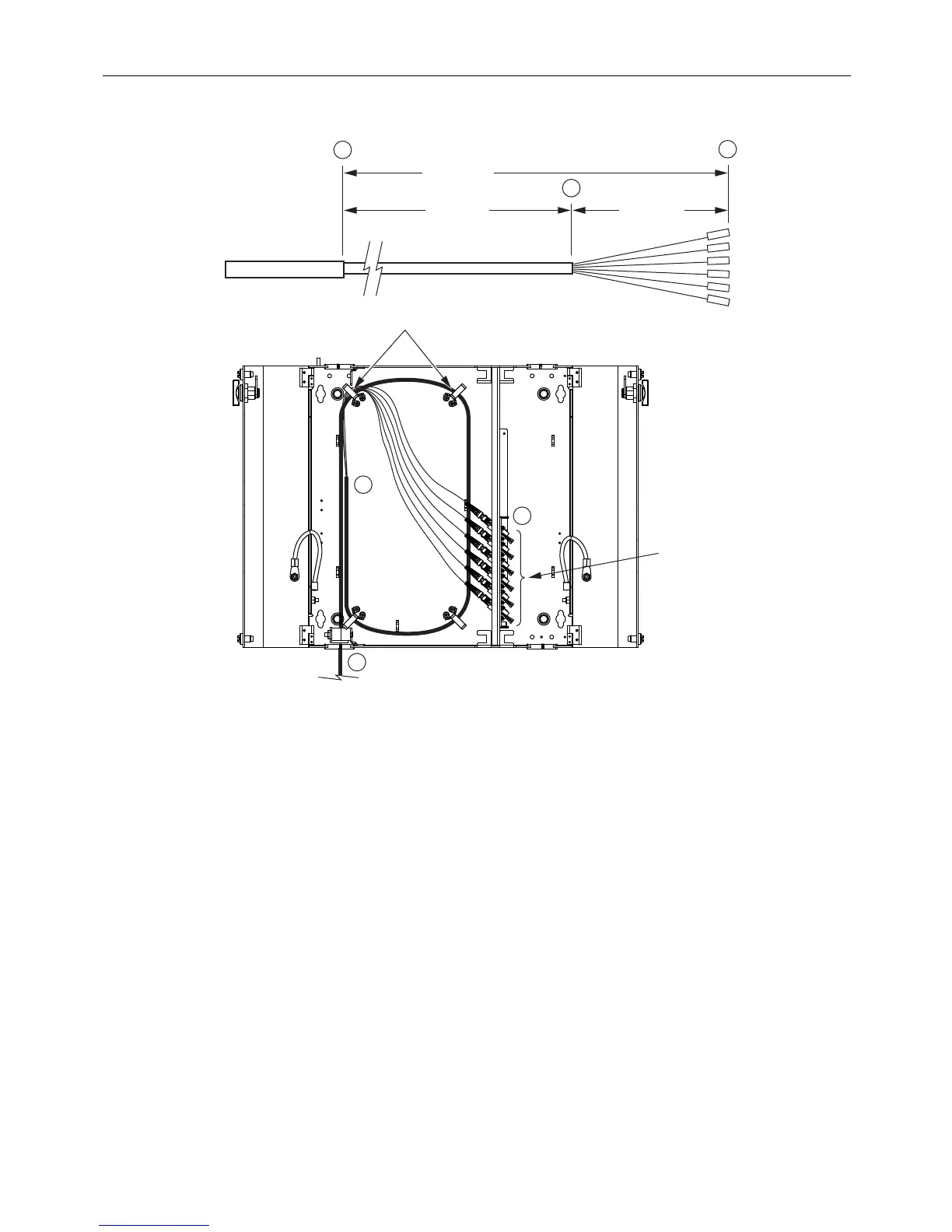Figure 24. Field Termination Breakout and Routing, 24-Fiber Wall-Mount Box (Bottom Entry, Bottom 6paks)