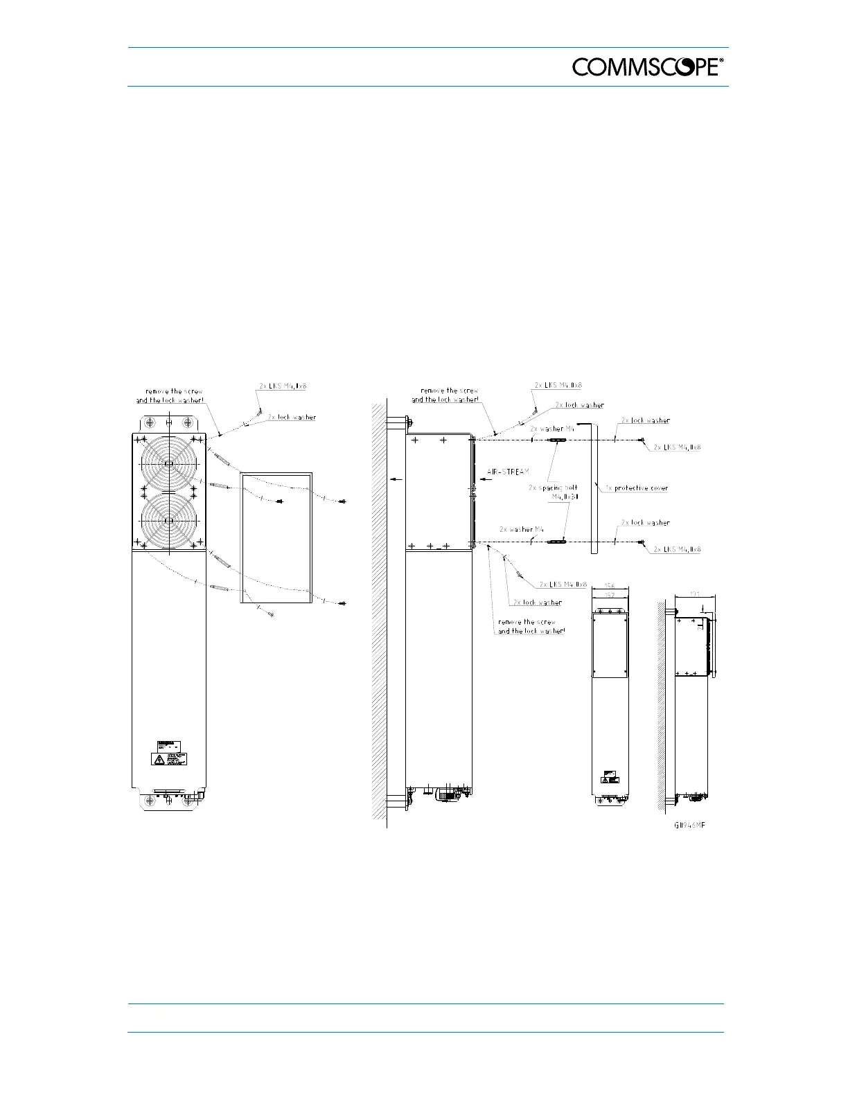with the respective lock washers from the cover of the air inlet of the Remote Unit,