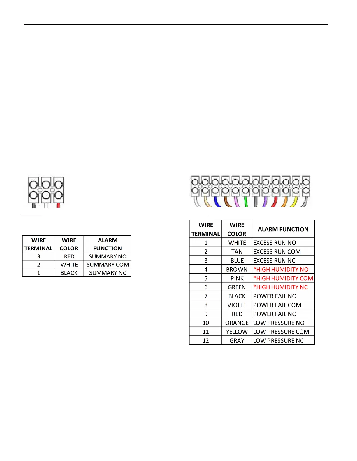 The connections to the alarm strip are as follows; refer to Figure 1 and 2 for correct locations and colors of the wires on