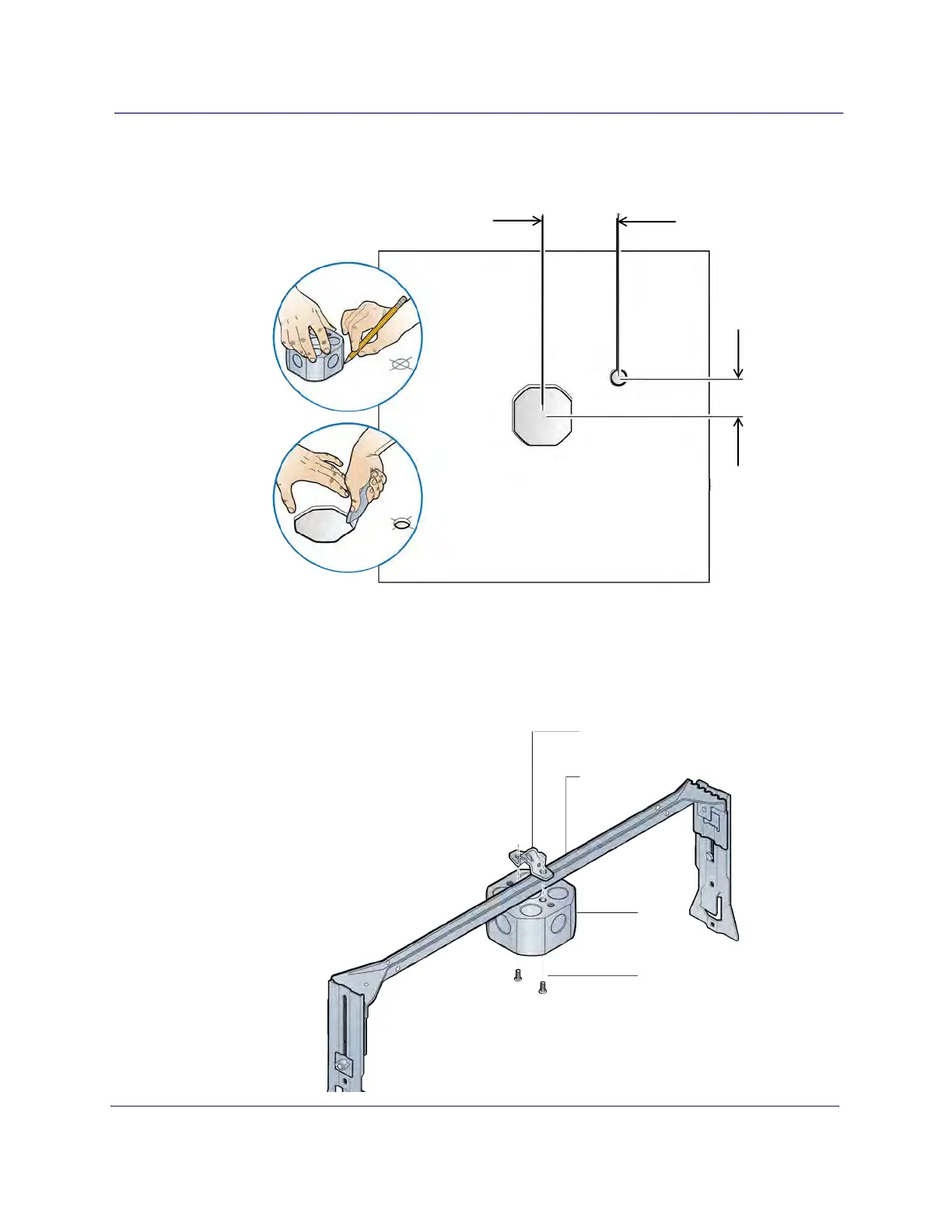 4 Attach the octagon box to the ceiling bracket using a clamp and screw.