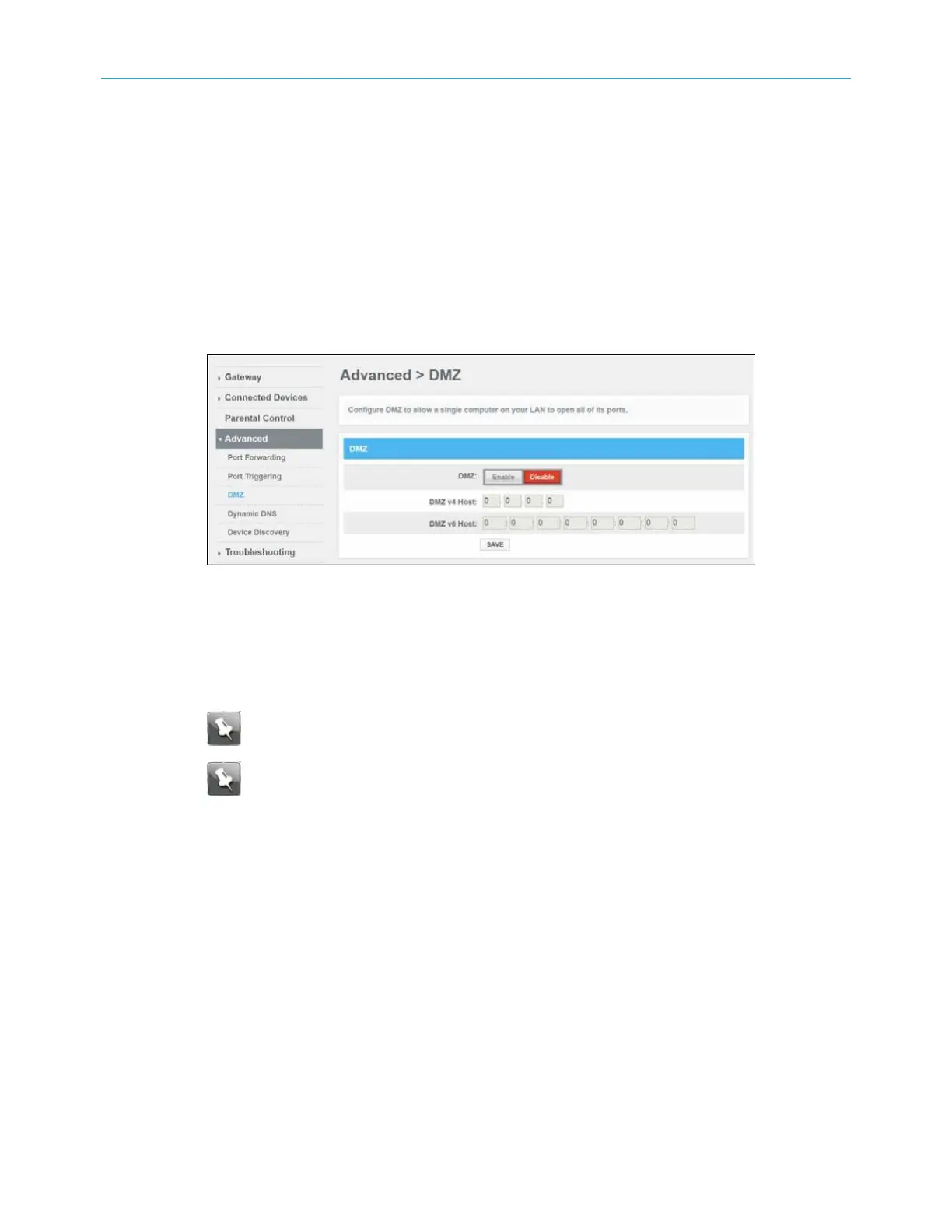 Note: To disable the DMZ Host, click the DMZ Disable button and then click