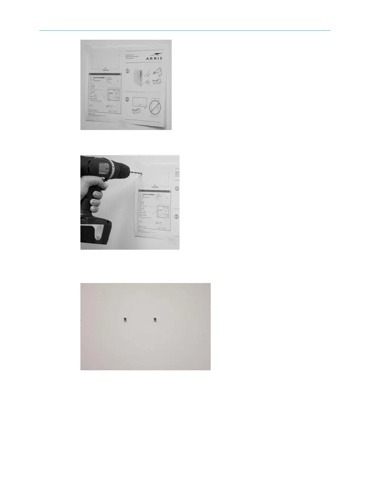 2. Drill holes through the template in the specified locations for the mounting screws. After