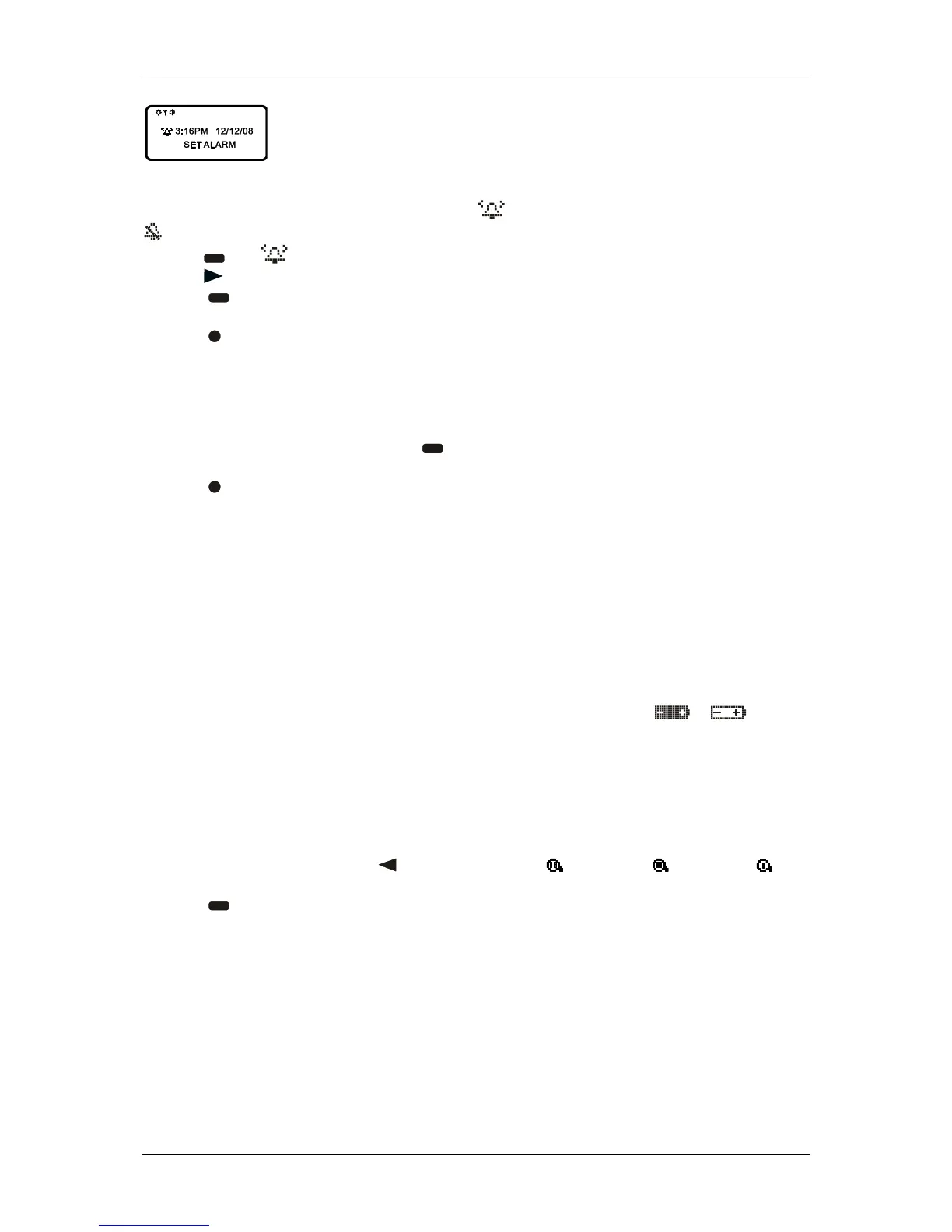 (3) Press to activate your selection. The alarm is now set to alert every day at this specified time.