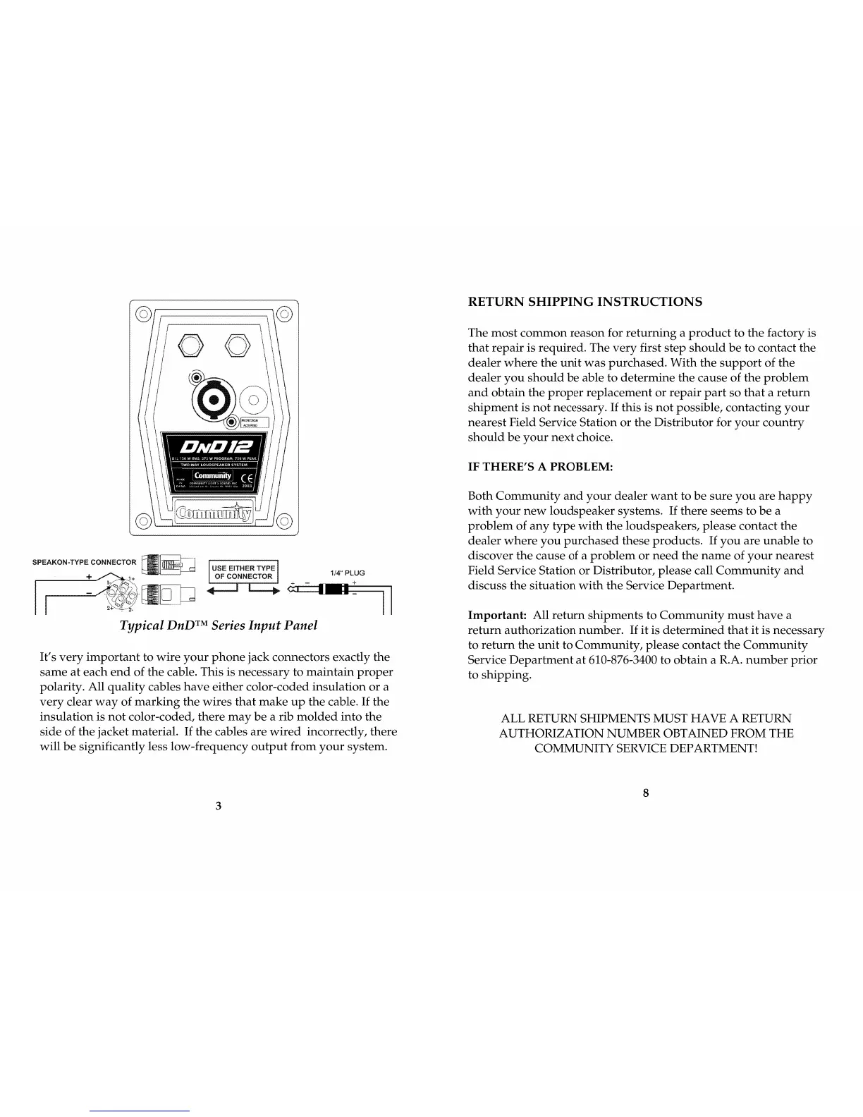 Community DND Series - RETURN SHIPPING INSTRUCTIONS; IF THERES A PROBLEM:
