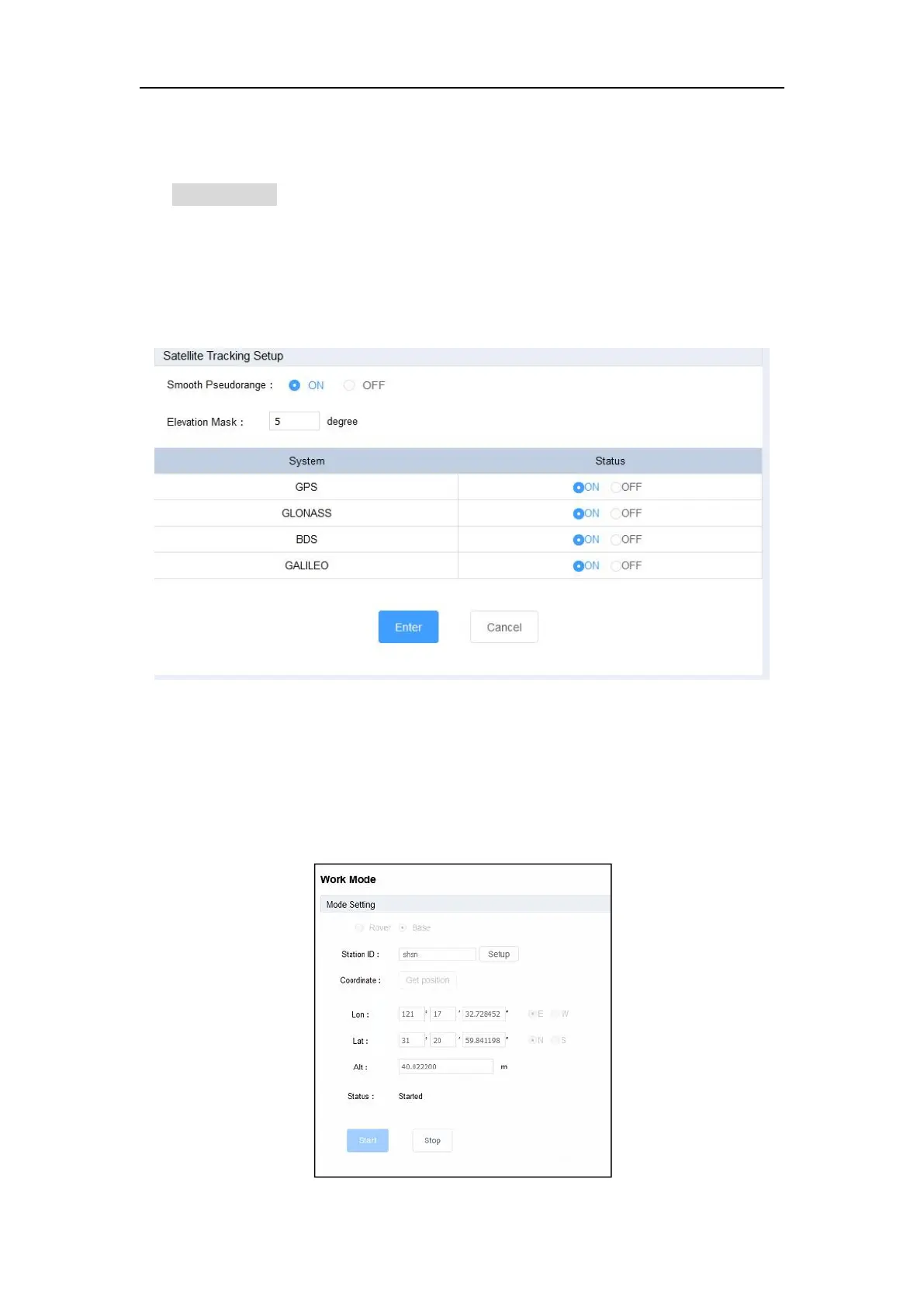 • Base: configure the receiver as a Base station and its settings. However, you can