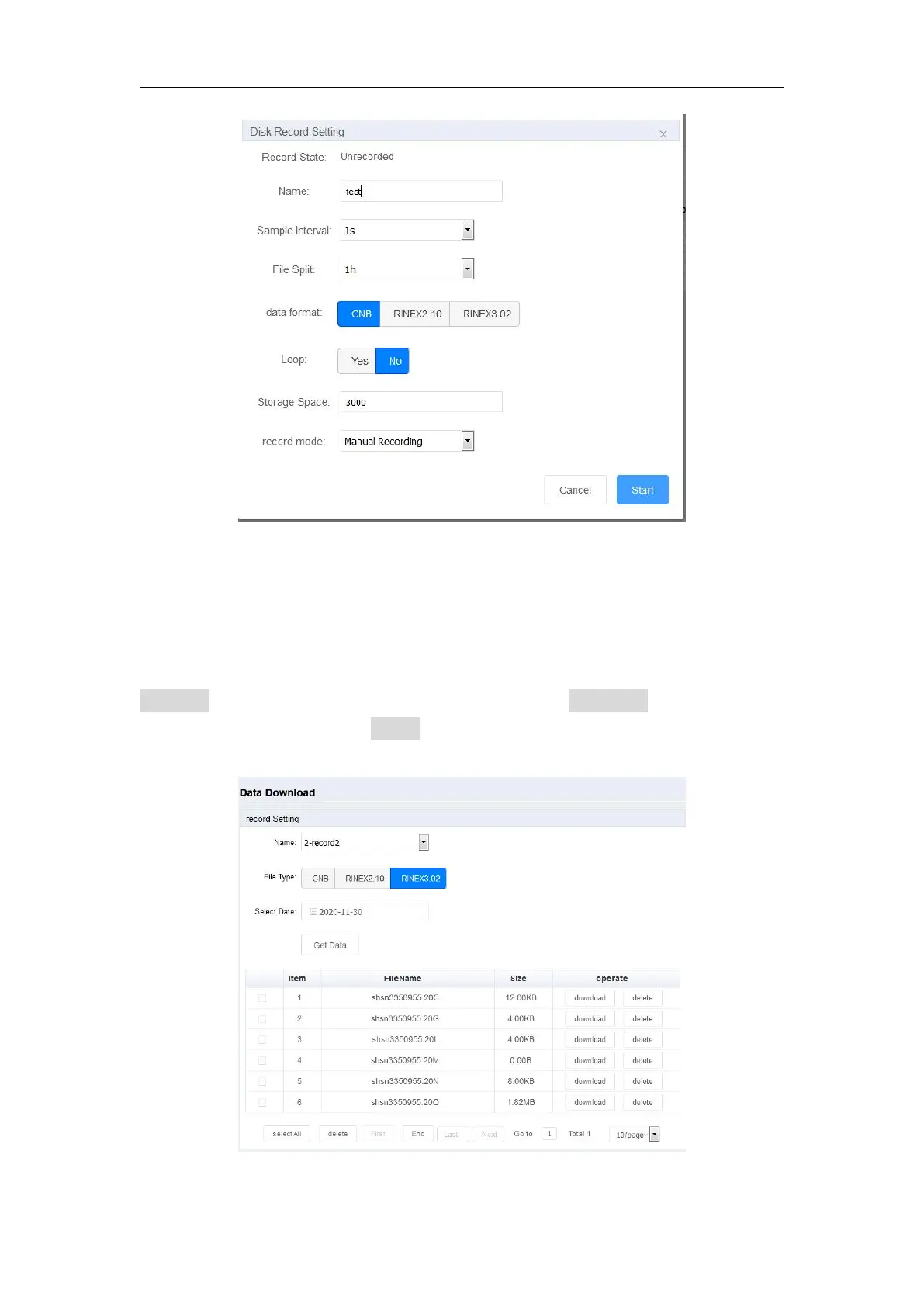 Firstly, select data name, file type (CNB \Rinex3.02\Rinex2.10) and date. Then click