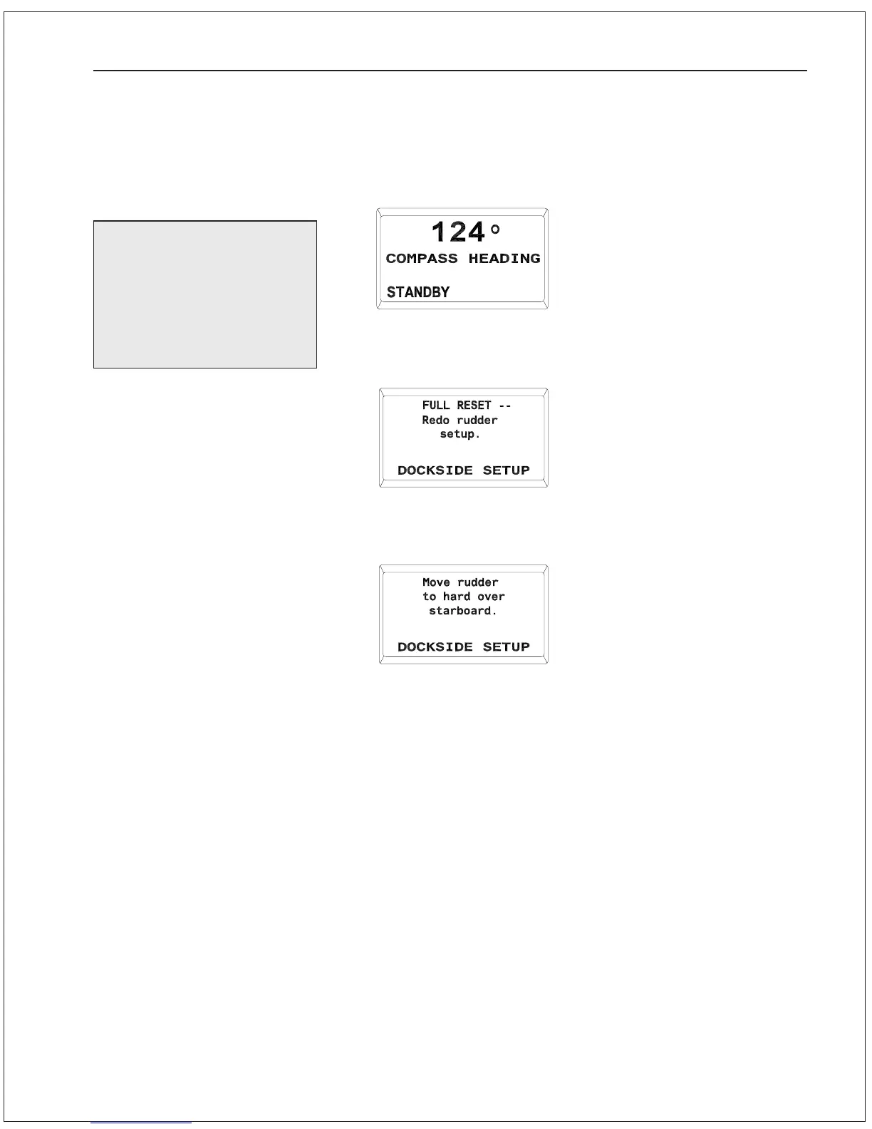 3. The Autopilot is now in DOCKSIDE SETUP mode. After a few