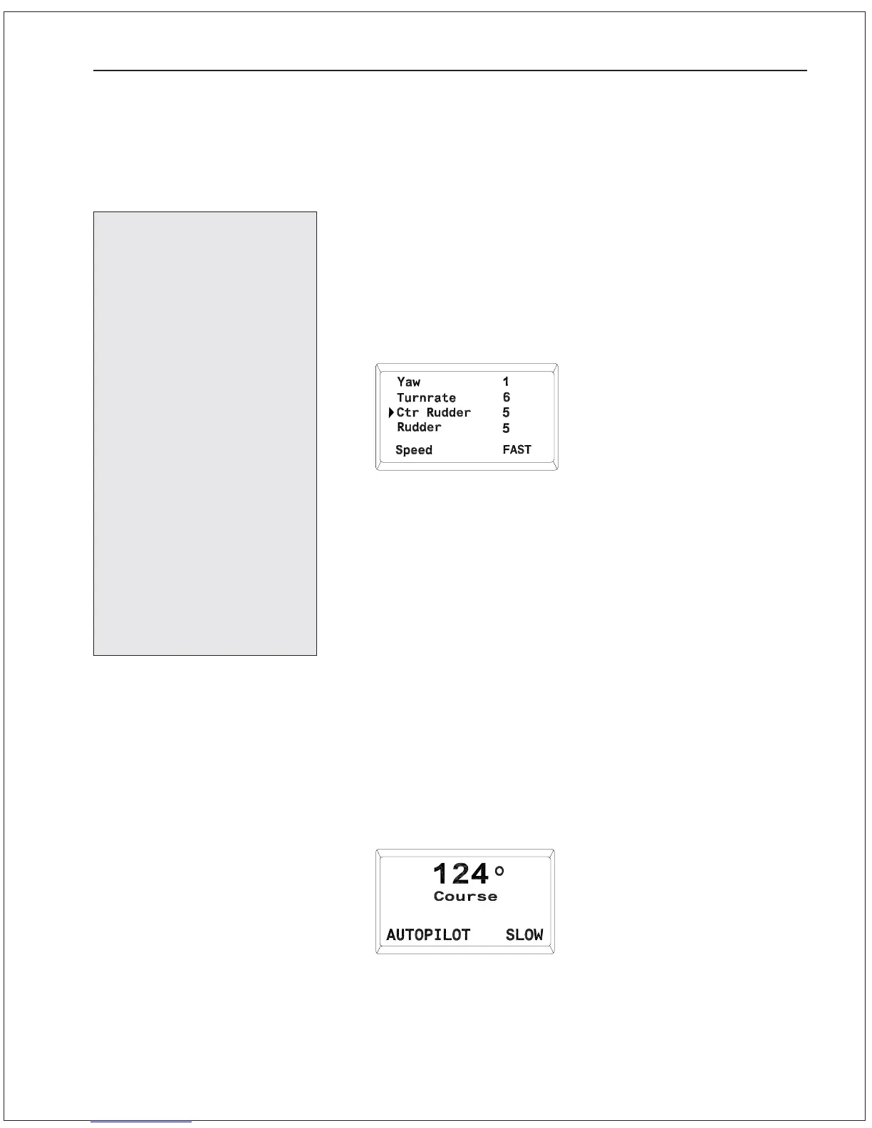 TURN RATE, CNTR RUDDER or RUDDER). The Steering