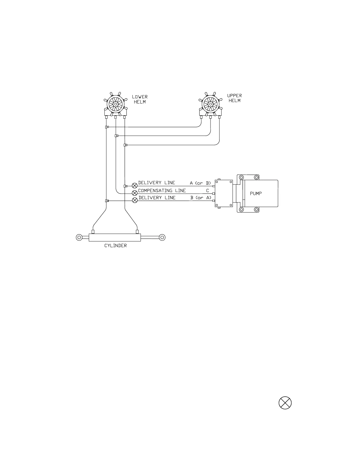 (if there is one), the compensating line connecting two helm pumps, or the