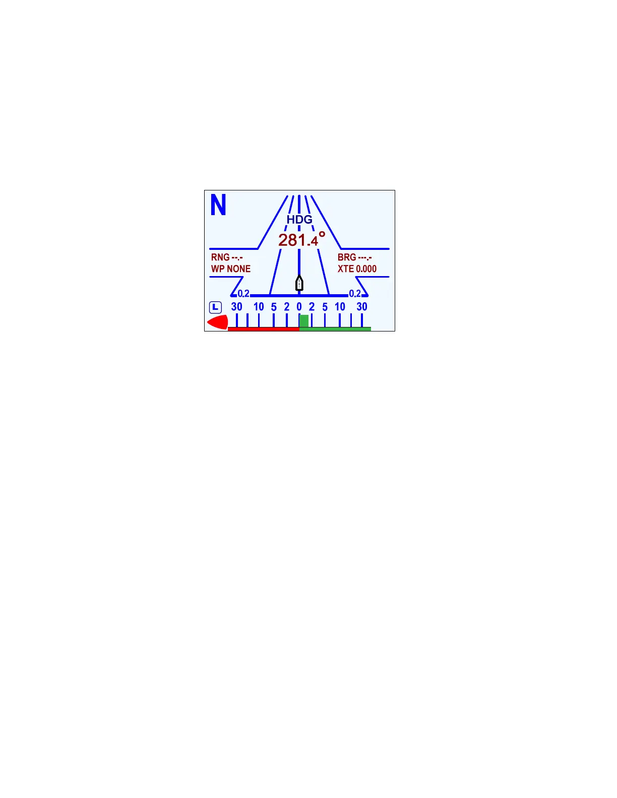 Cross-Track Error is shown graphically by the boat being located to the left or right of the