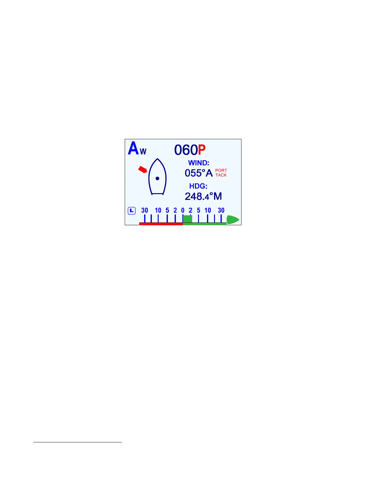 A Low Wind condition – see page 147 – is indicated on this screen as “WIND-LOW”, above the actual wind angle.