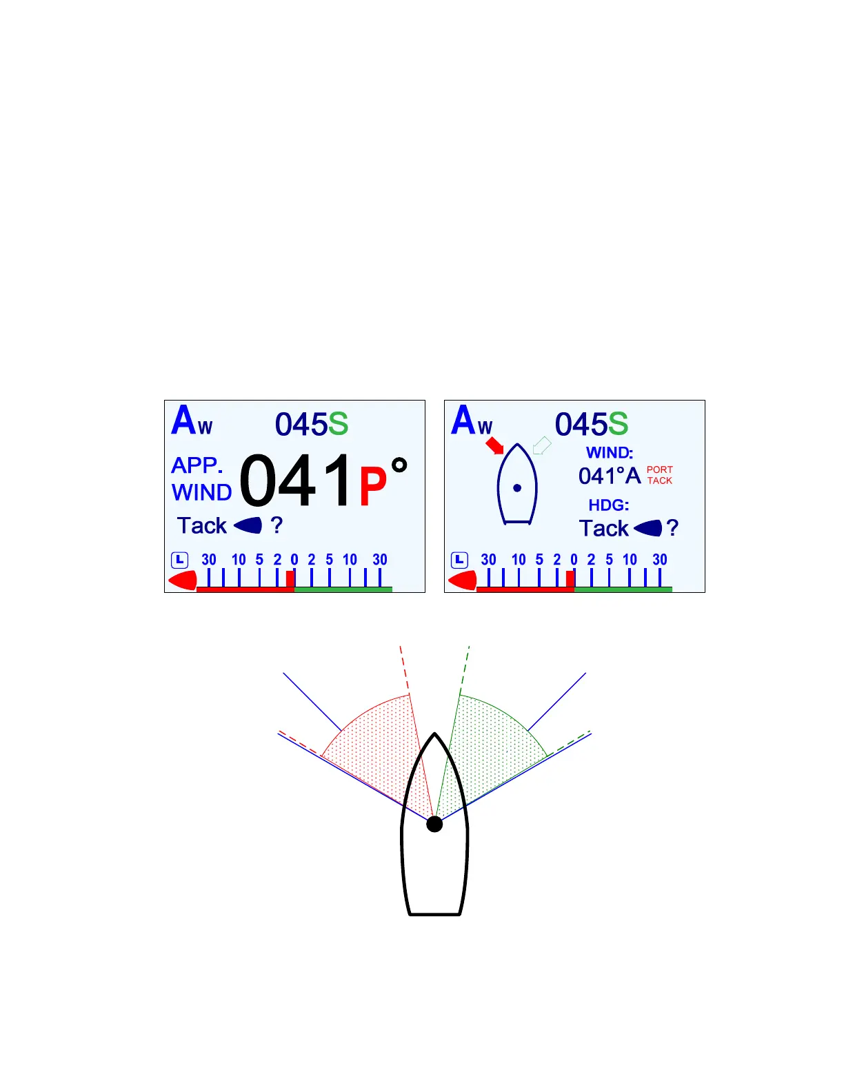 For example, with Close Reach set to the default 060°, if you are sailing at an angle of