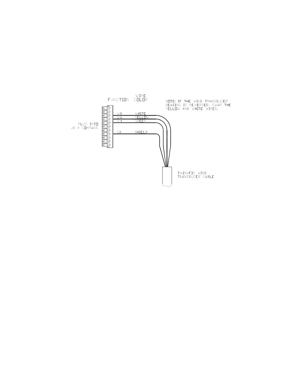 Figure 44 – Wiring Connections for Twin-Fin Wind Transducer