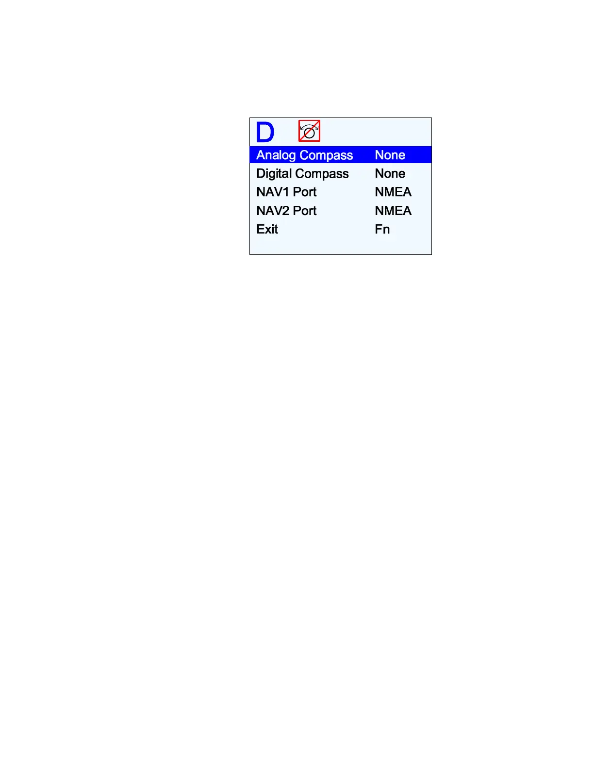 Highlight Compass Setup in Figure 66 and press Fn. The list of all four supported compass