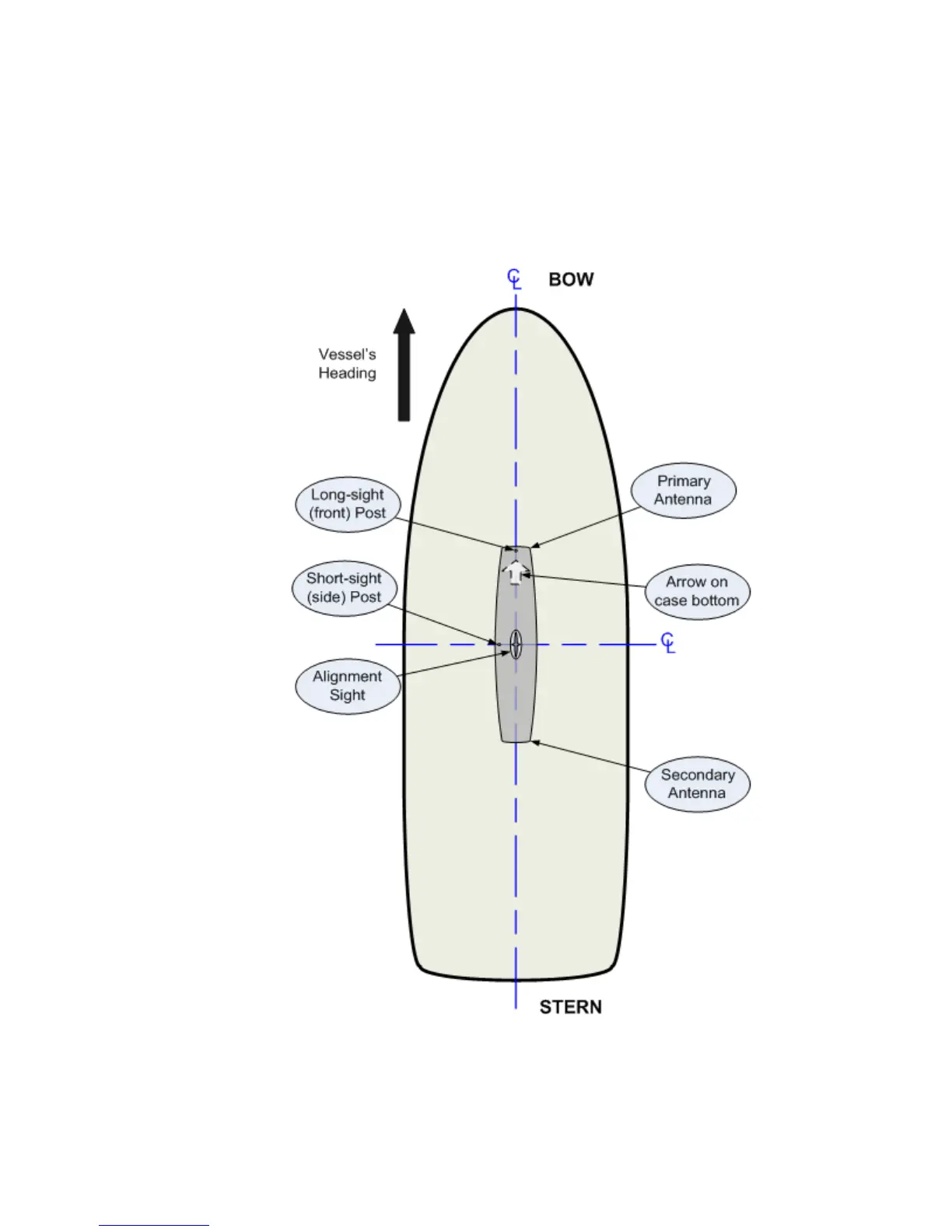 vessel’s fore-aft centreline, or is parallel to that centreline. In this orientation, the