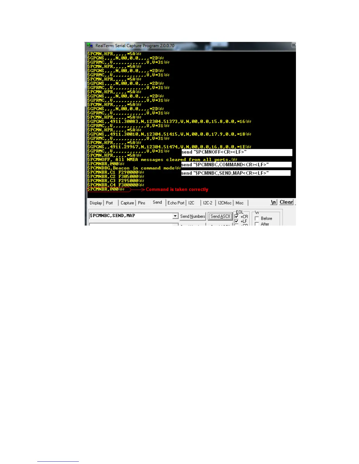 If the command is taken, you will see a response $PCMNBR,@00. If you see the return