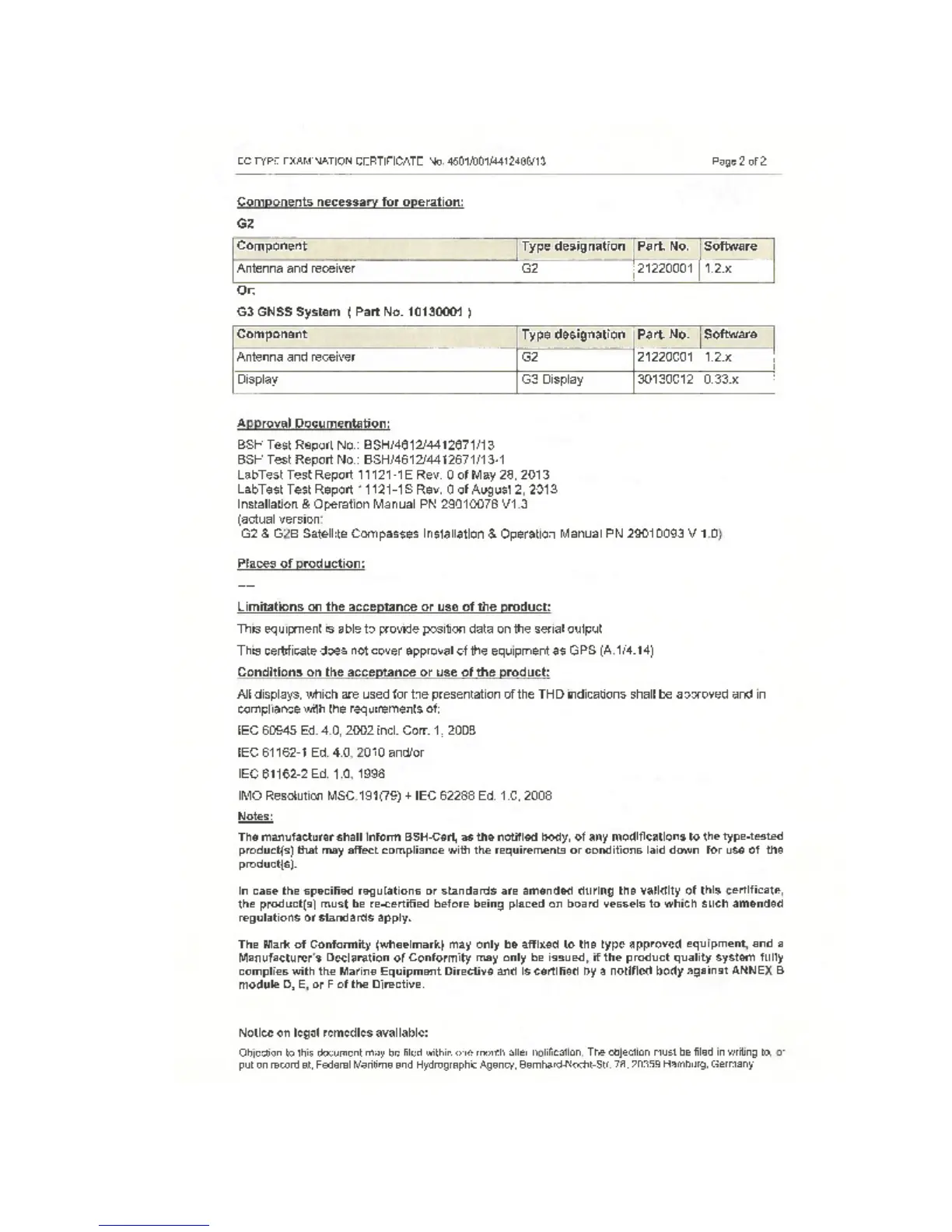 ComNav G2 & G2B Installation & Operation CE Compliance Statement
