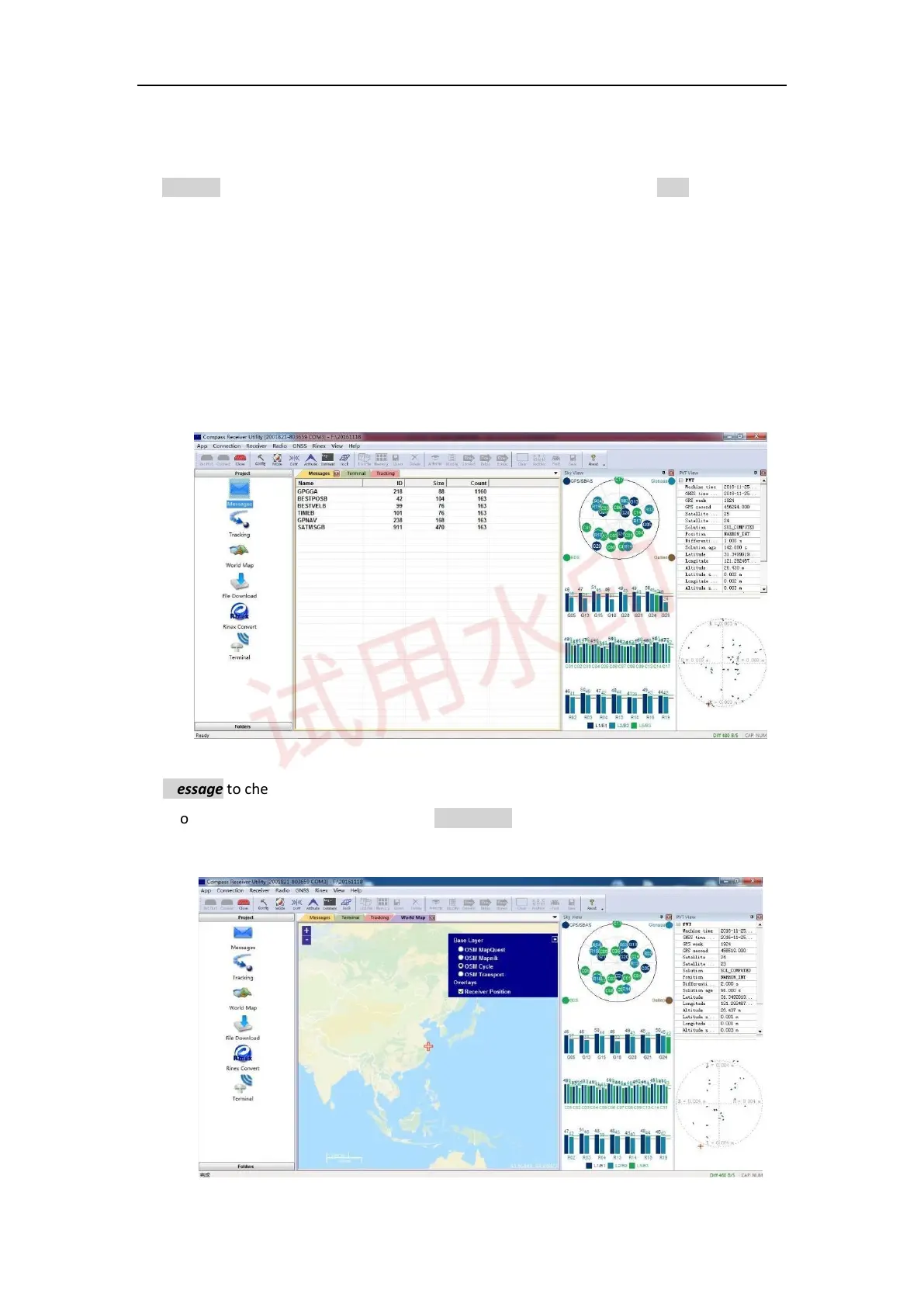 Go to Tracking to check satellite information such as SNR and elevation, and click view to display the sky view