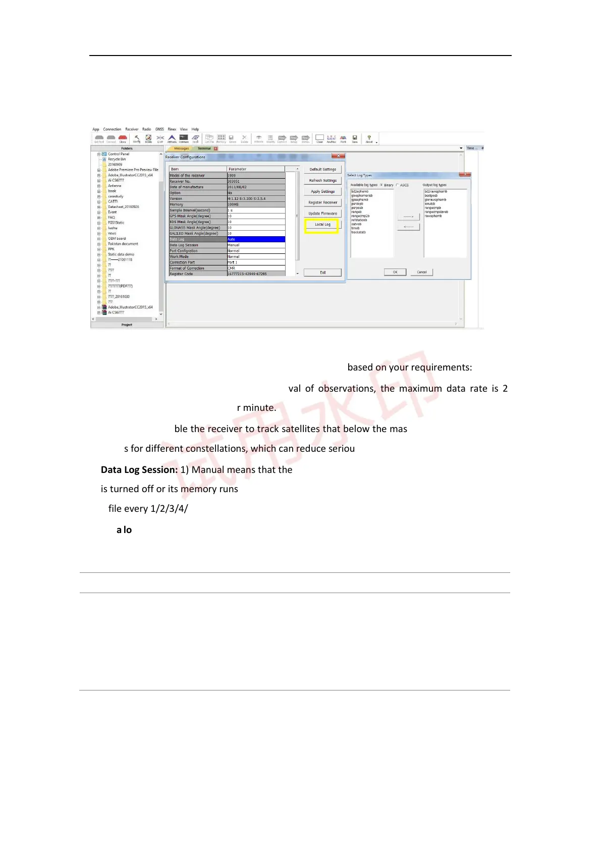 ⚫ Data Log Session: 1) Manual means that the receiver keeps recording data in one file until the receiver