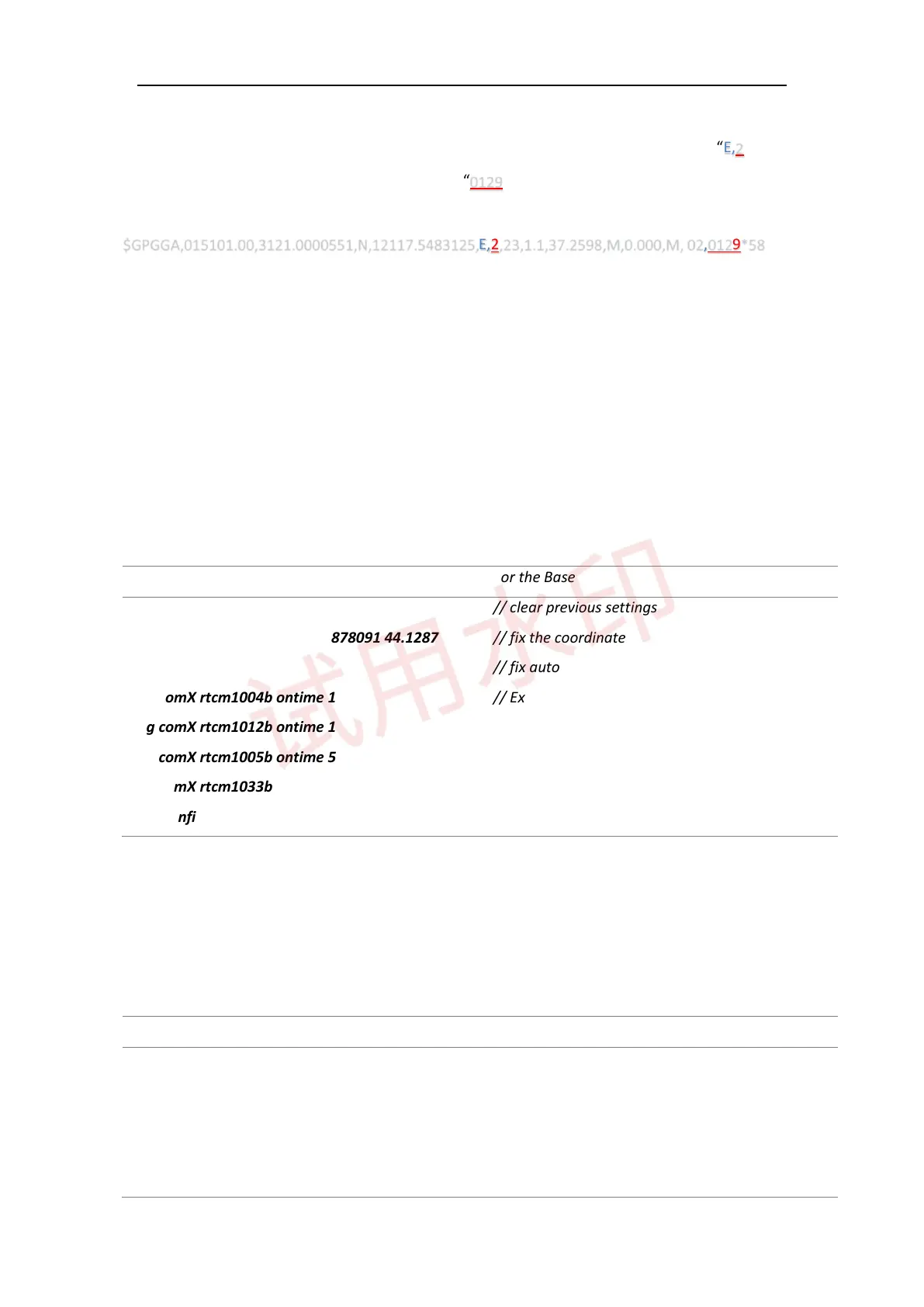 The following commands show RTCM3.0 as an example, which may be incompatible with rover receiver of