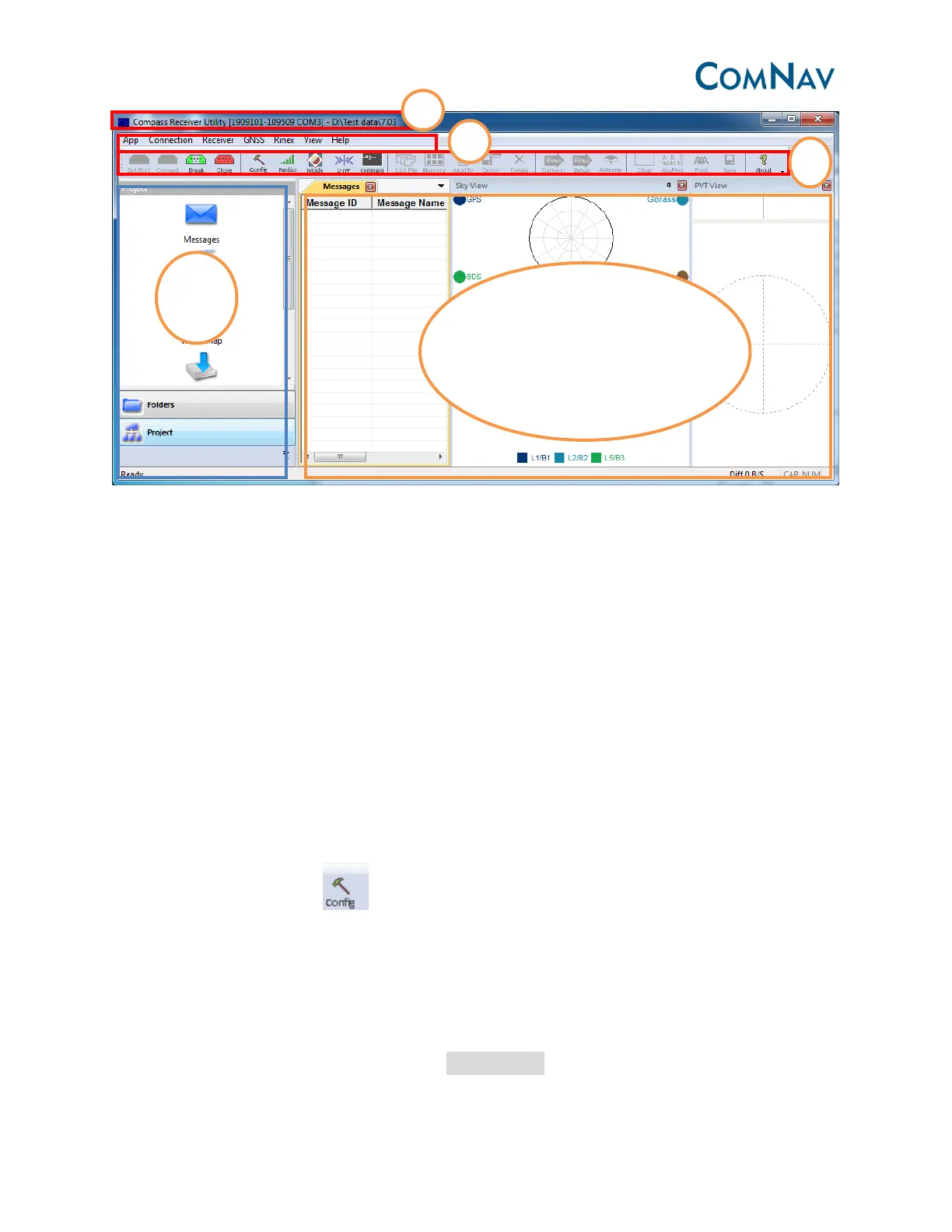 ❺Main window: show the information such as PVT view, SV sky plot view, and hyper terminal.