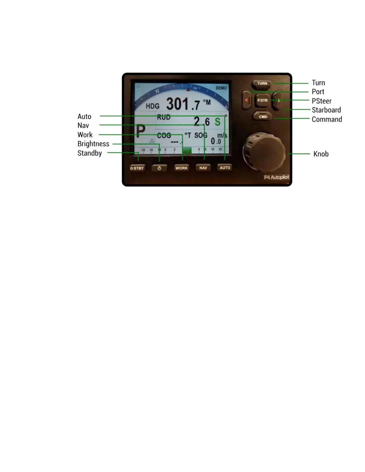 POWER STEER mode moves the rudder to starboard for as long as the button is