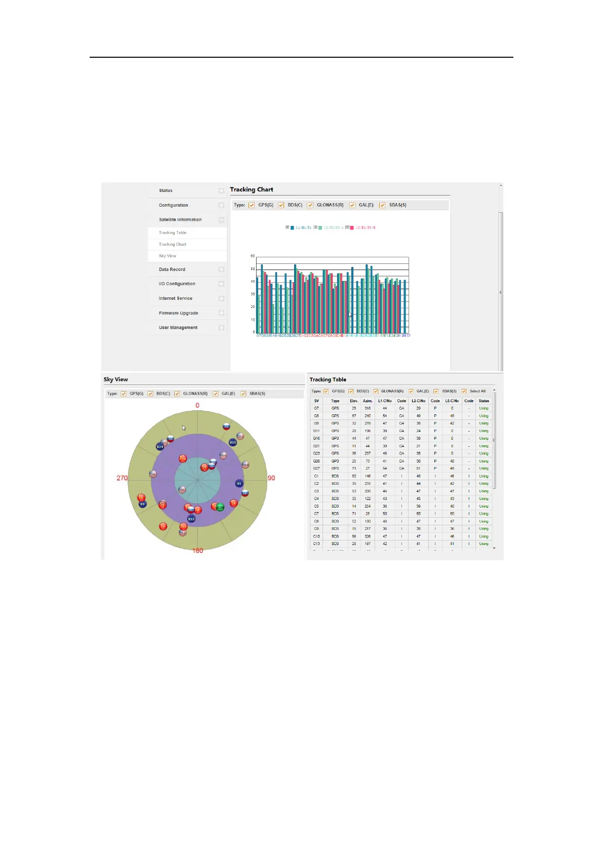 BDS, GLONASS, GAL and SBAS (WAAS/EGNOS/MSAS) satellites’ display without