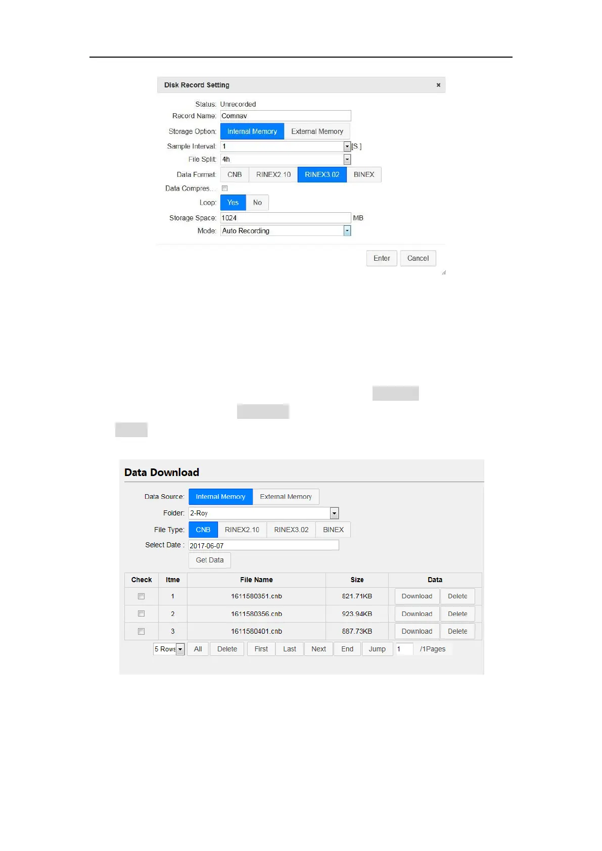 (CNB\BINEX \Rinex3.02\Rinex2.10) and date. Then click Get Data, you will see data