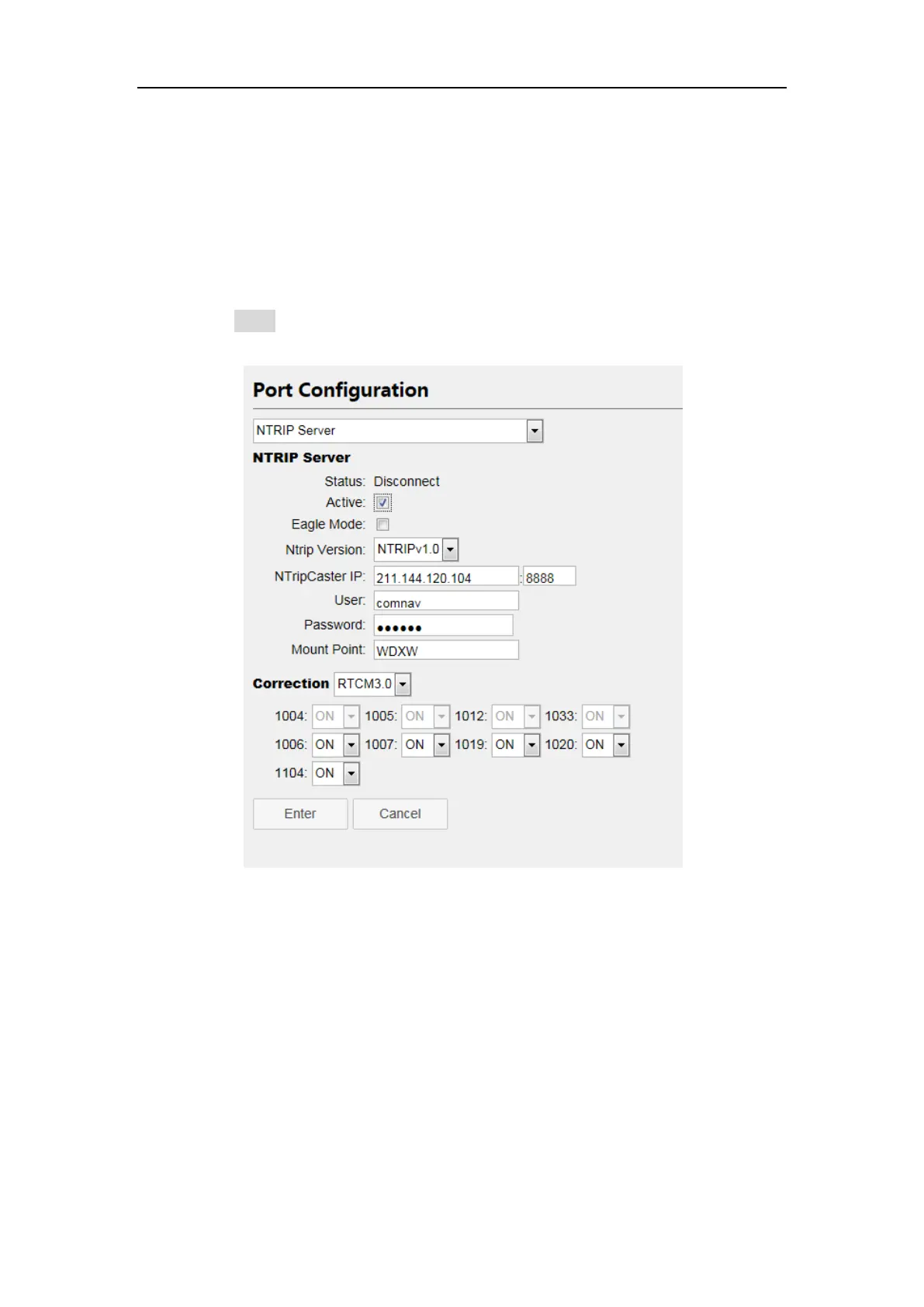 Set the NtripCaster address and NrtipCaster port; this IP address is the same
