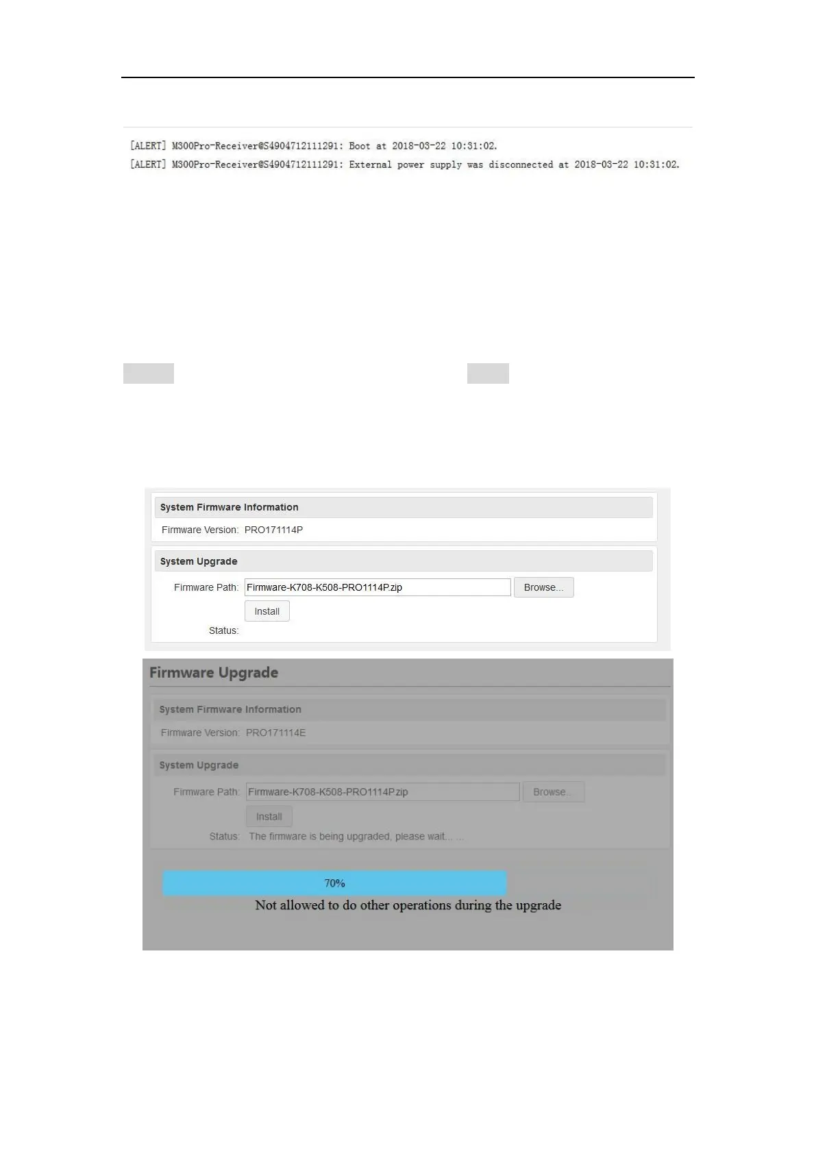 100% and status will be ”Not allowed to do other operations during the upgrade”.