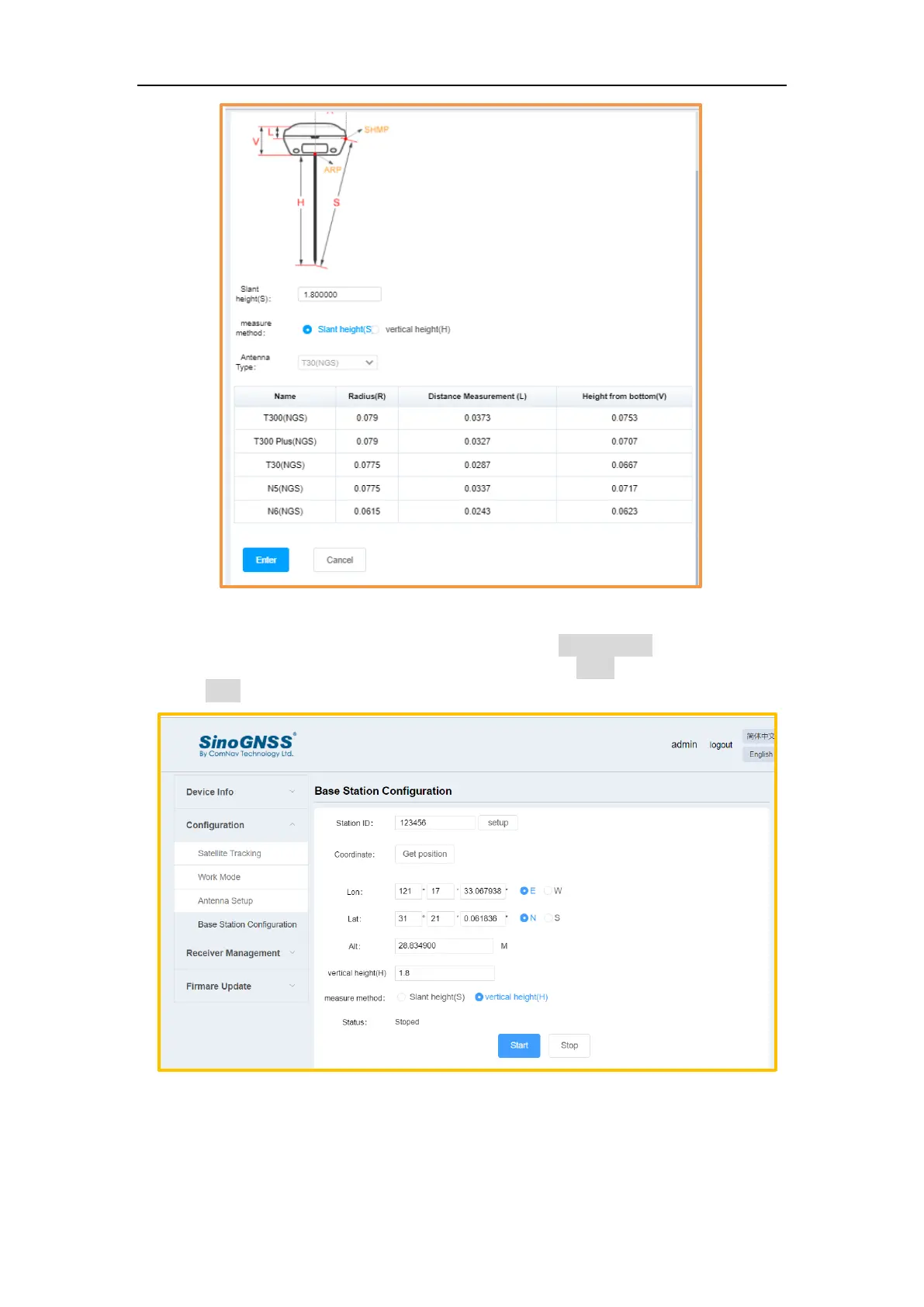 ⚫ Base station configuration: Setup the station ID, Antenna height, measure method