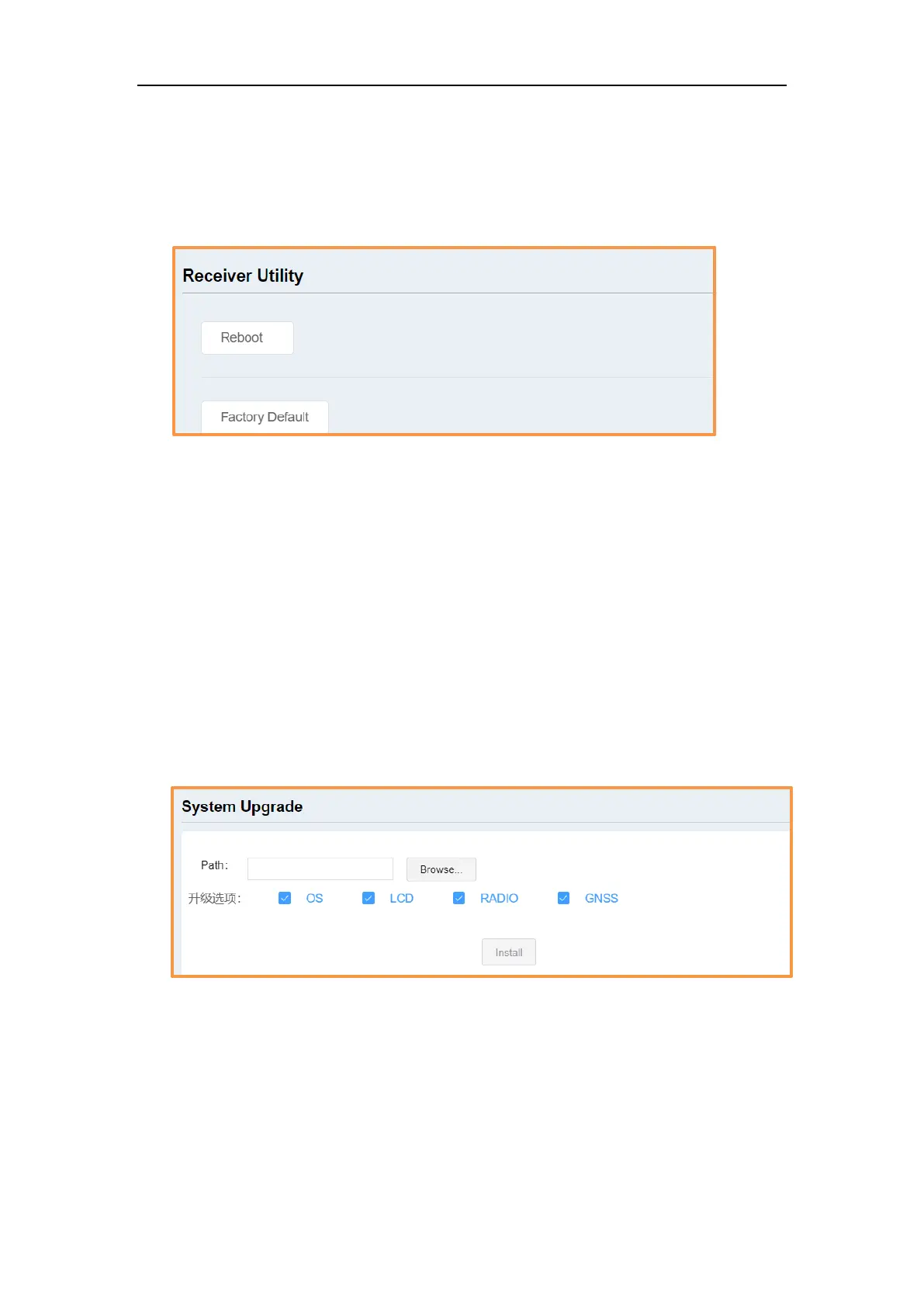 You can update the system firmware (OS), board firmware (GNSS), front panel