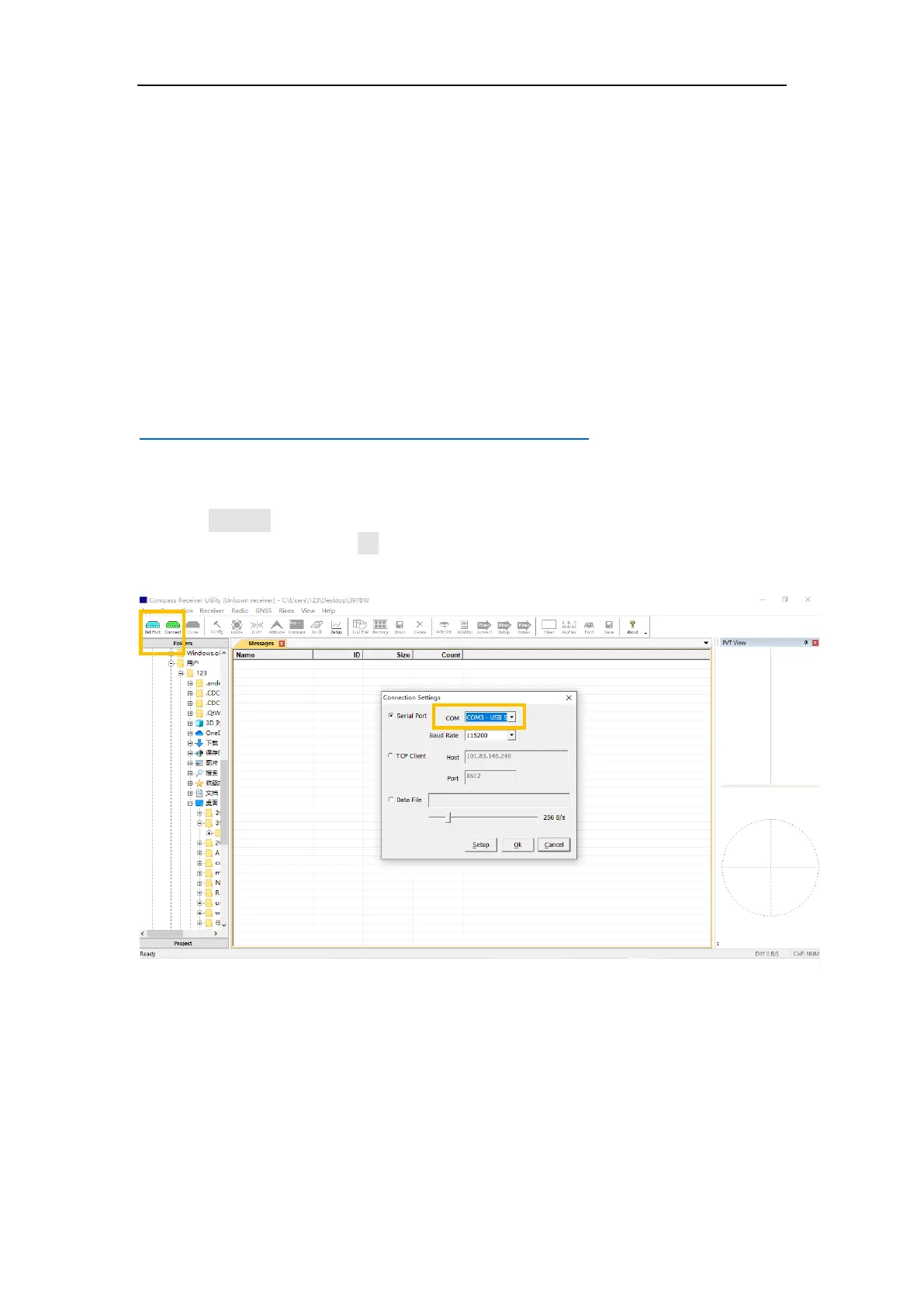 proper baud rate -> click Ok to complete receiver connection.The SN of receiver will