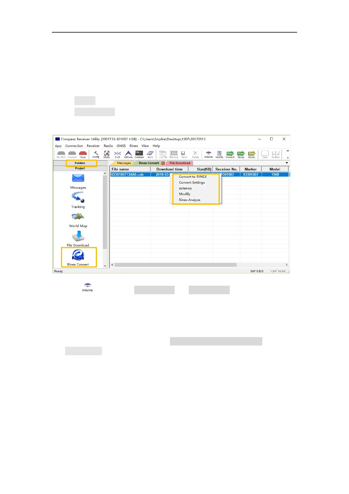 3. Click Rinex Convert to check all raw data on main window. Right click on the file to