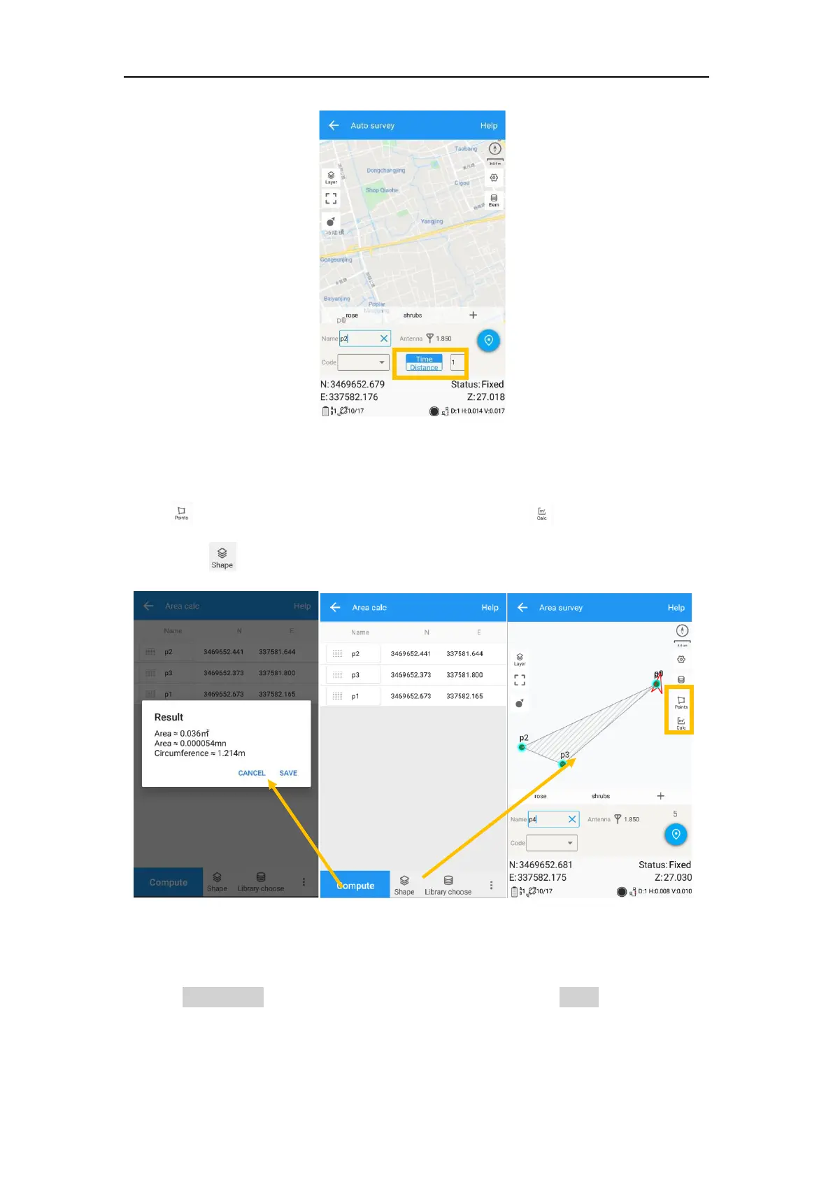 Go into Stake point interface, click to choose a point and tap Stake. Survey Master
