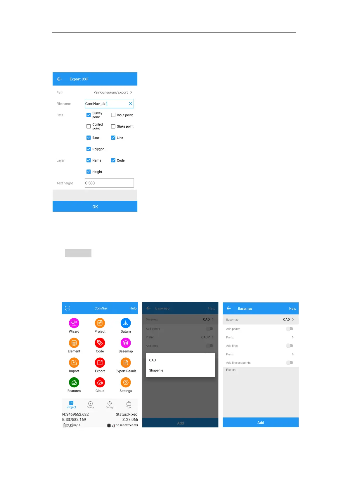 Tap Basemap to import DXF/DWG/SHP file into Survey Master.