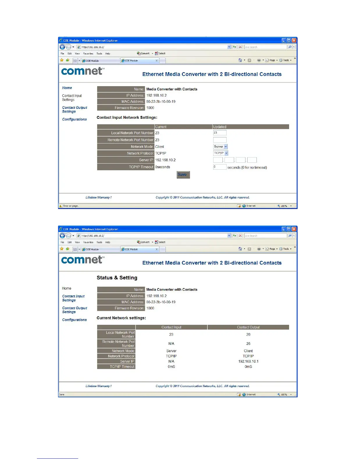 Figure 9 – CNFE2MC2C[/M] Settings Page after Changes