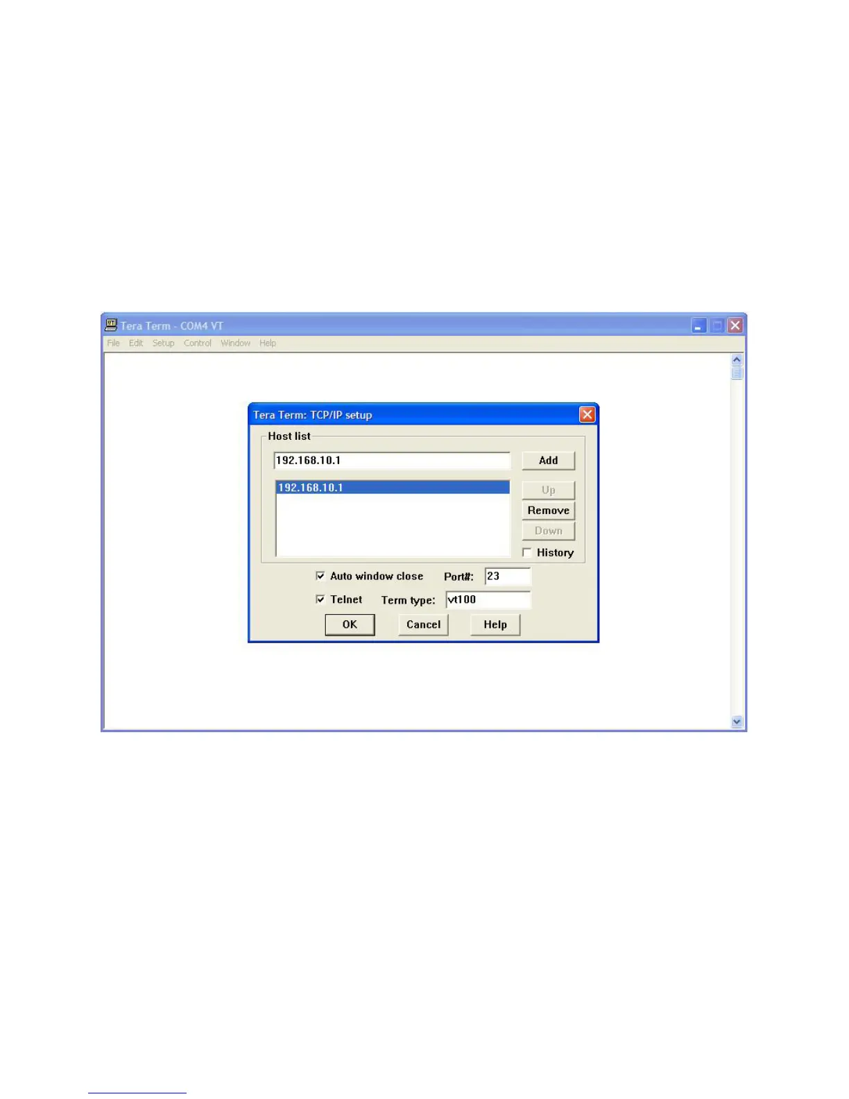 Using TeraTerm Telnet Connection