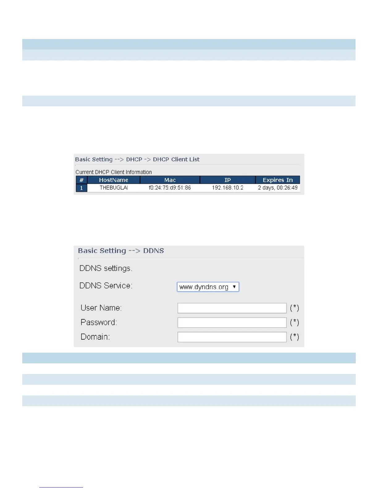 Static DHCP Client List The list shows the one-to-one relationship of the MAC address and IP address.