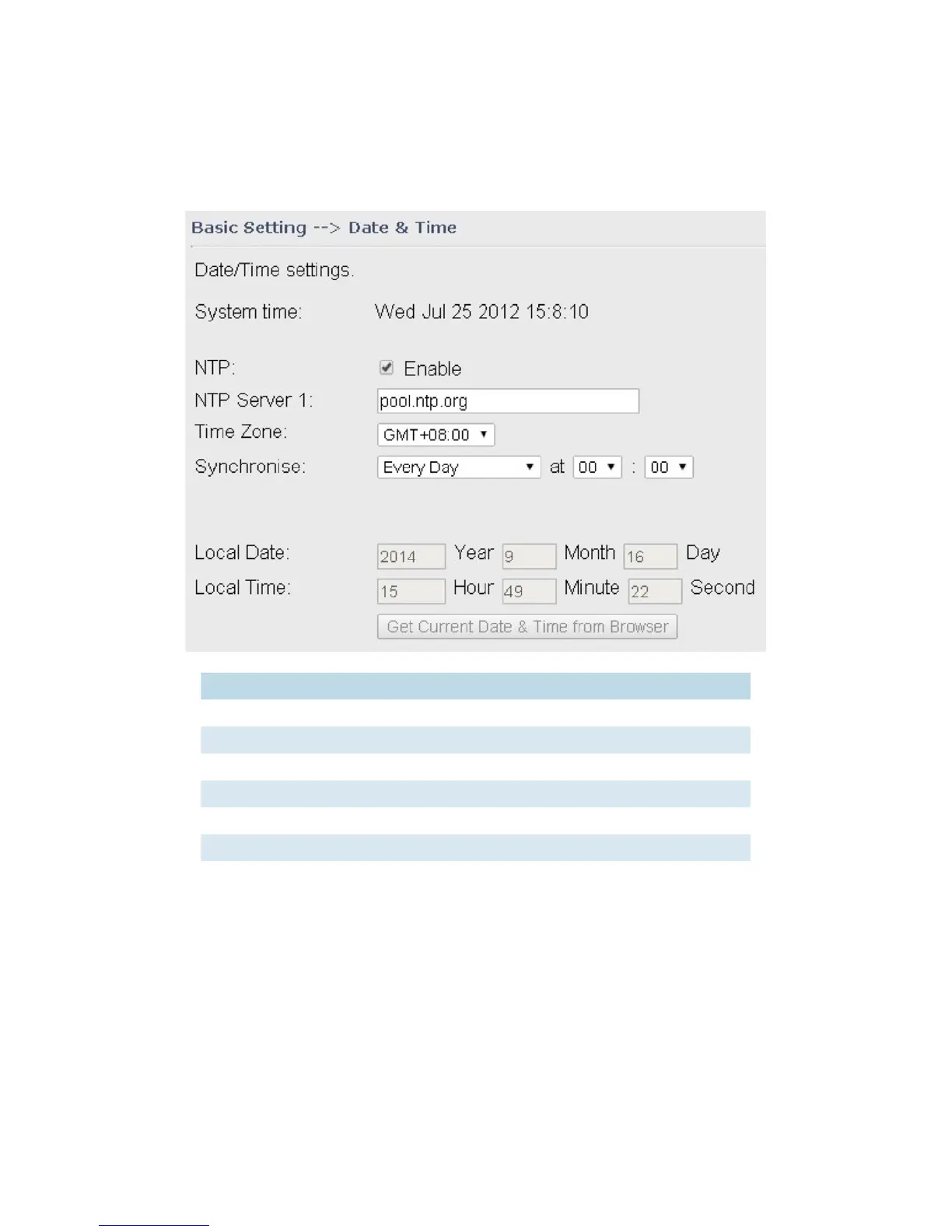 In this page, you can set the date & time of the device. A correct date and time will help the