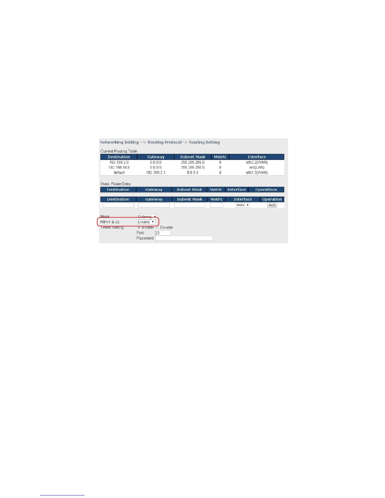 Do not choose Disable in the RIPv1 & v2 list if you want to enable Dynamic Routing. After clicking