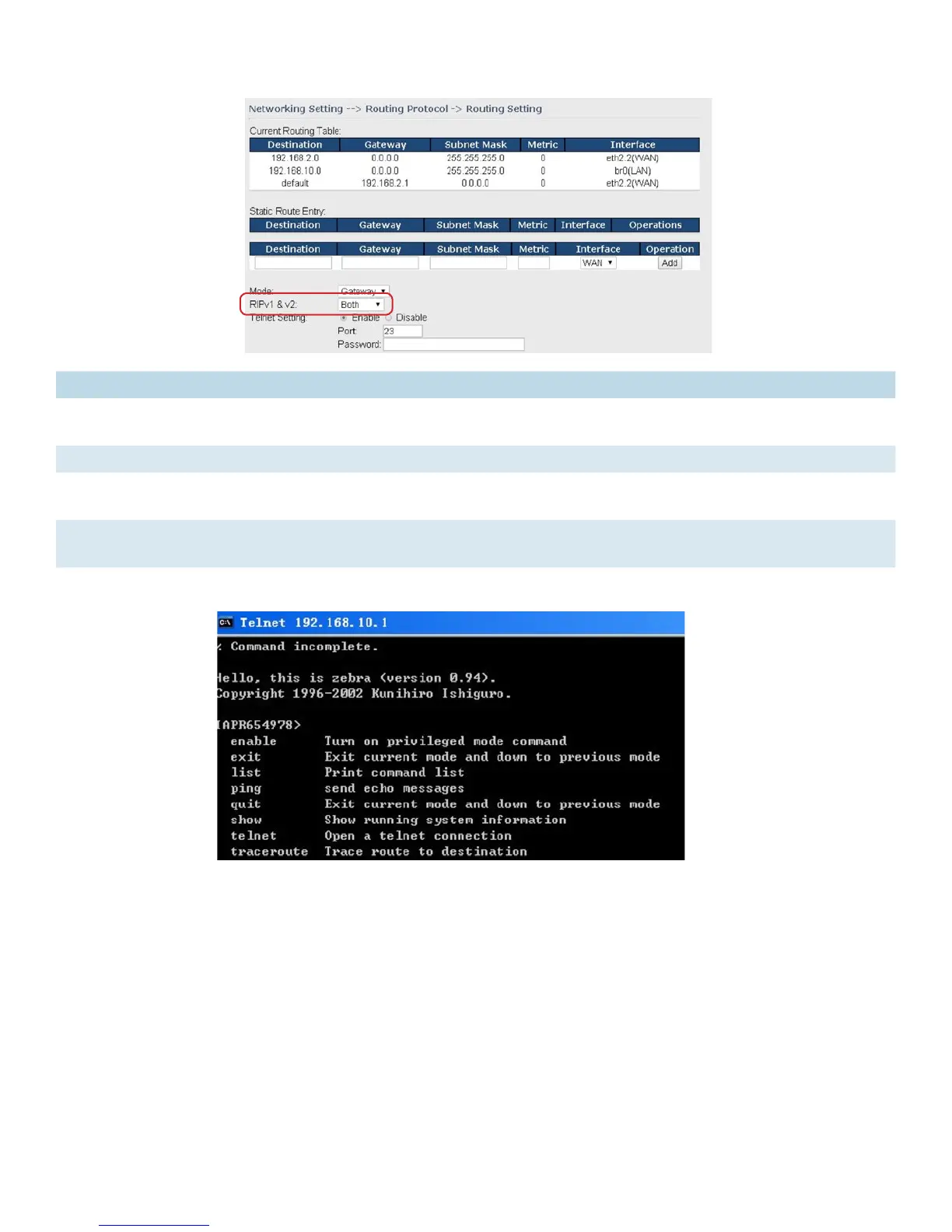 Telnet Setting This option is only available when dynamic routing is enabled. It allows you to make