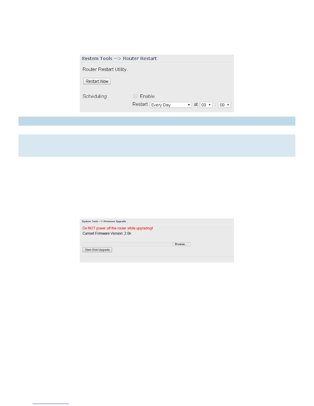 Restart Now Click to restart the router via warm reset