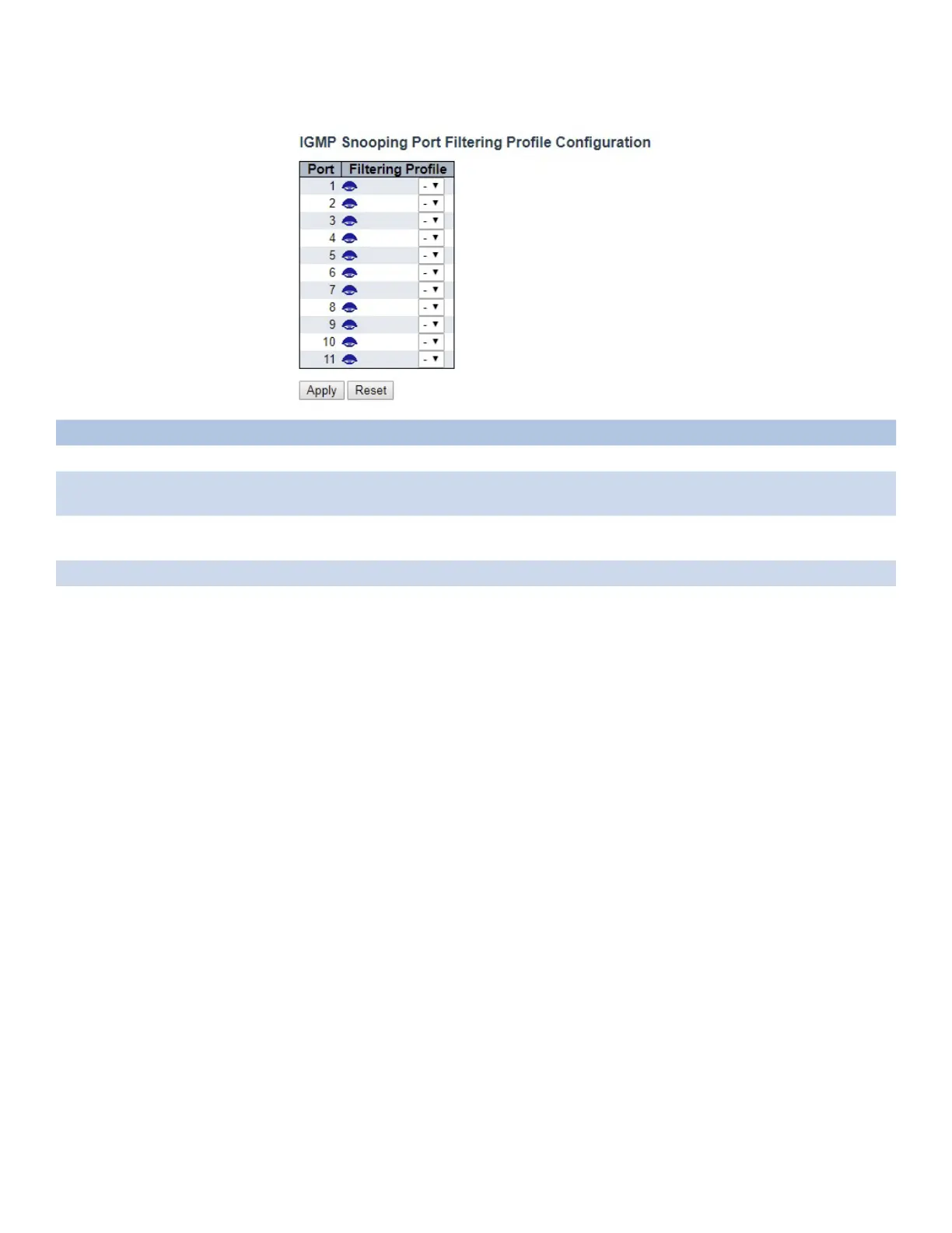 Filtering Profile Select the IPMC Profile as the filtering condition for the specific port. Summary about the